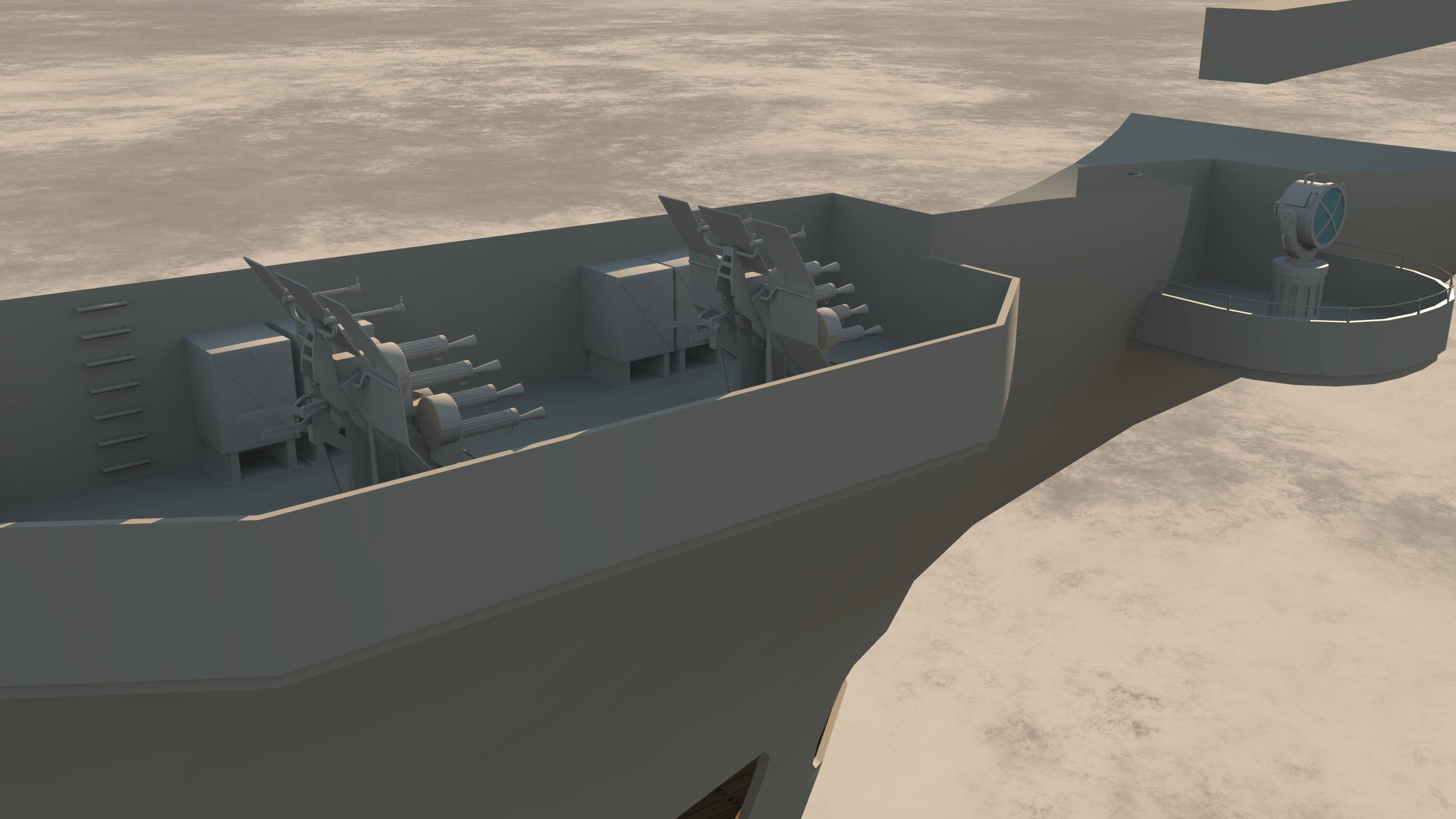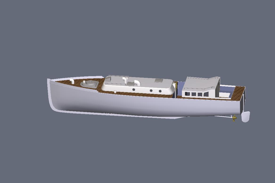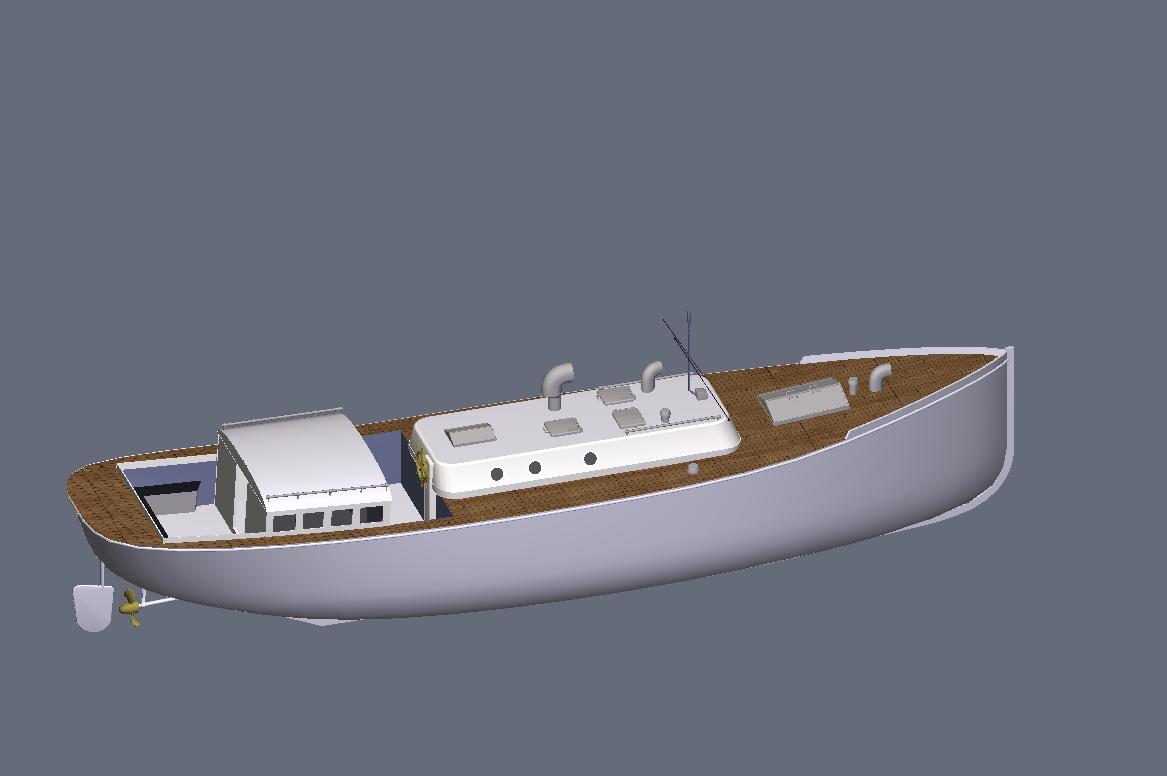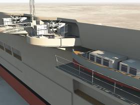 Ein Test ob es passt. Der Motorkutter für die Mannschaften in seiner Nische.