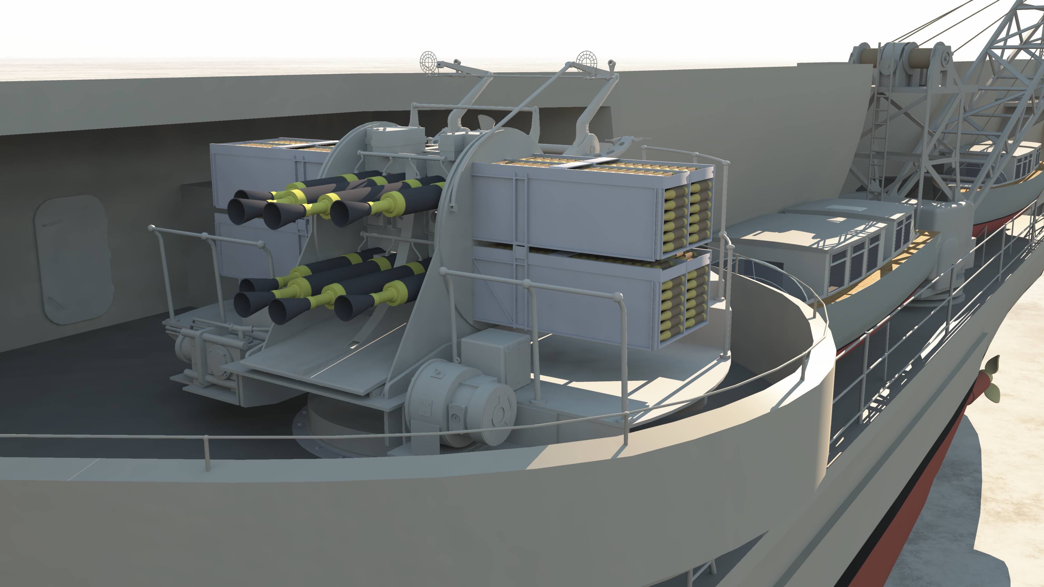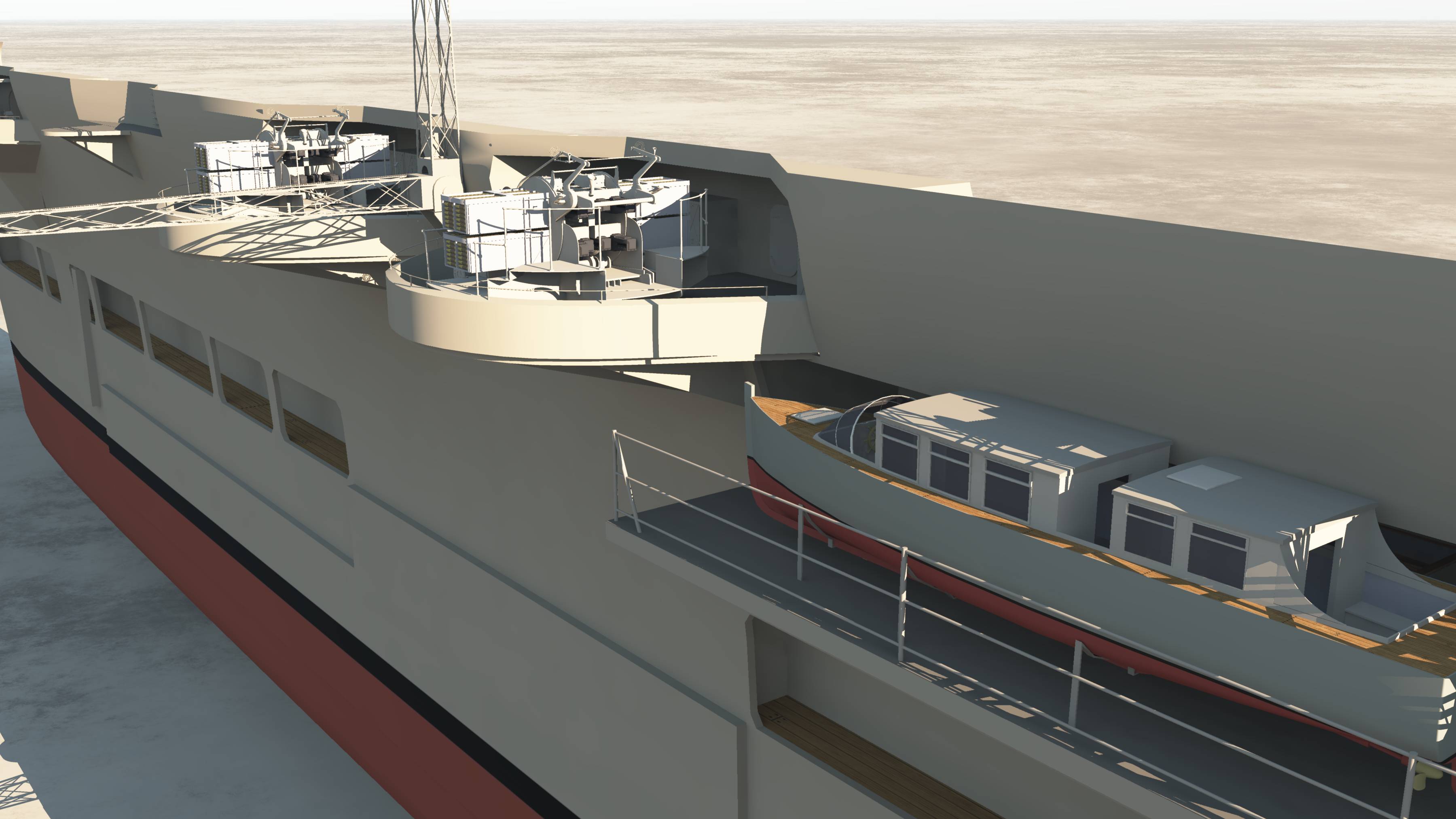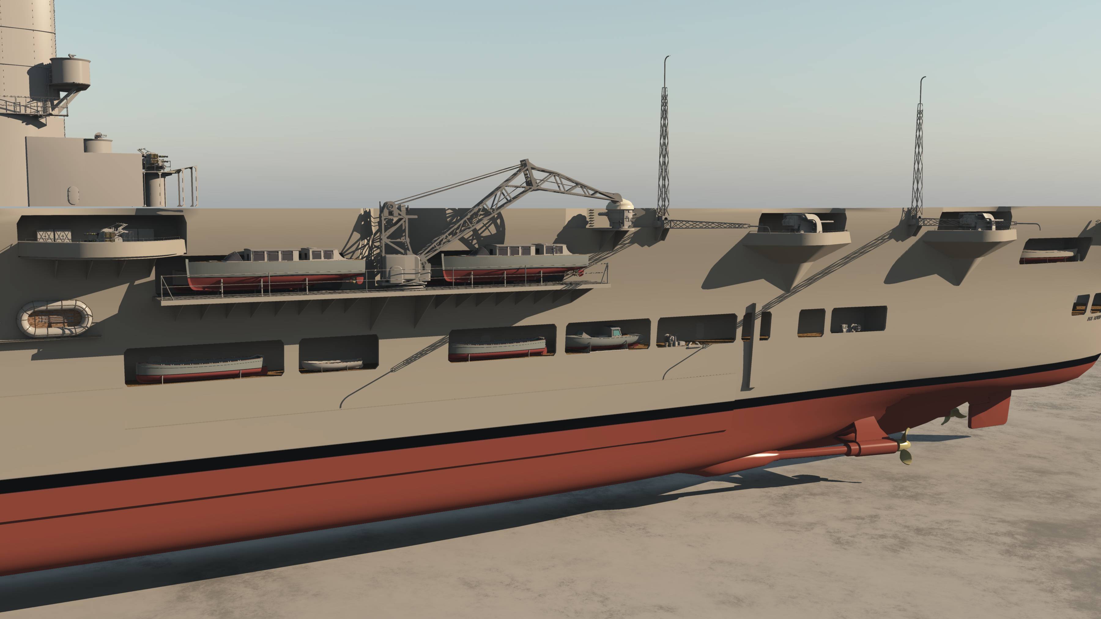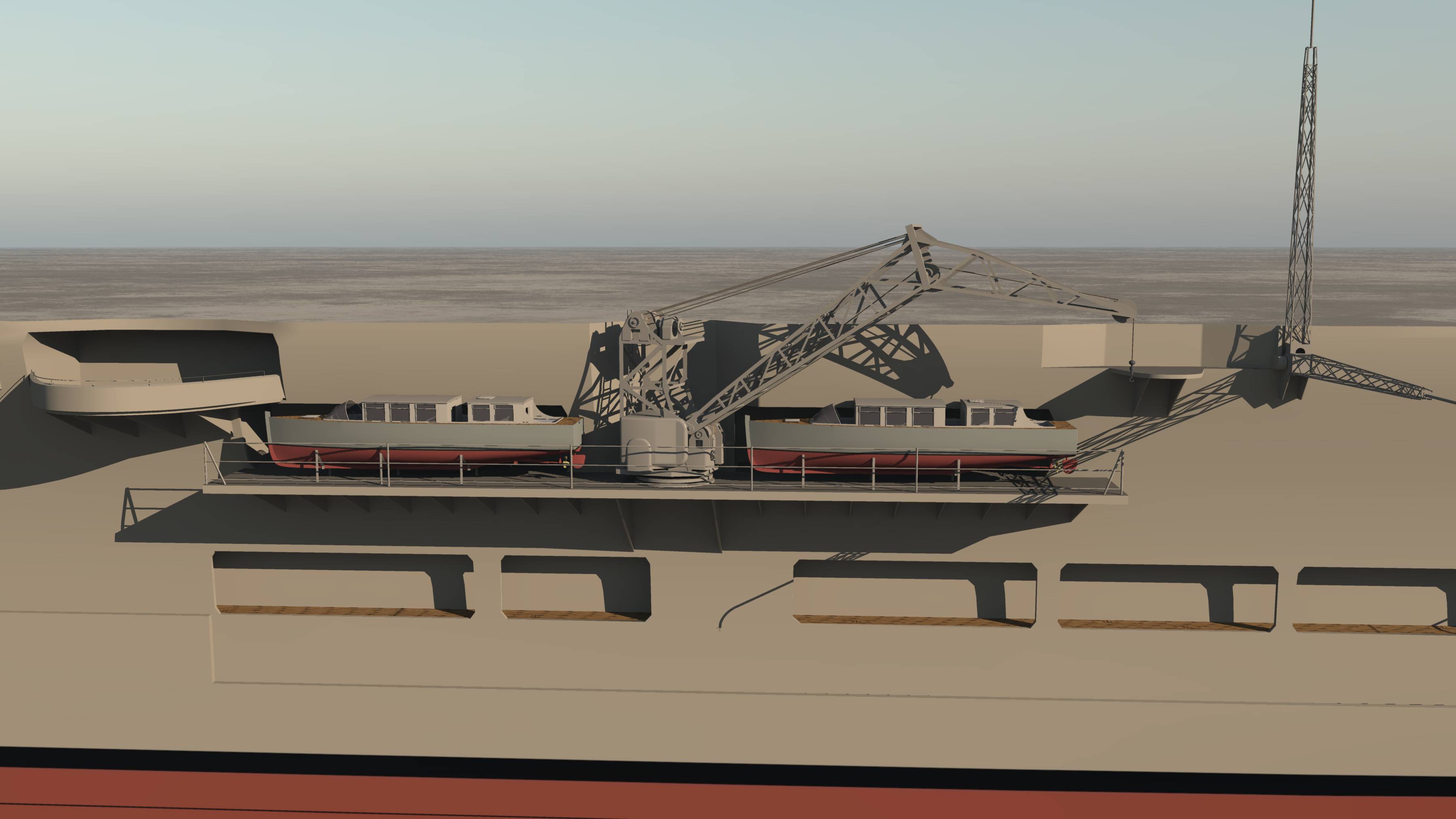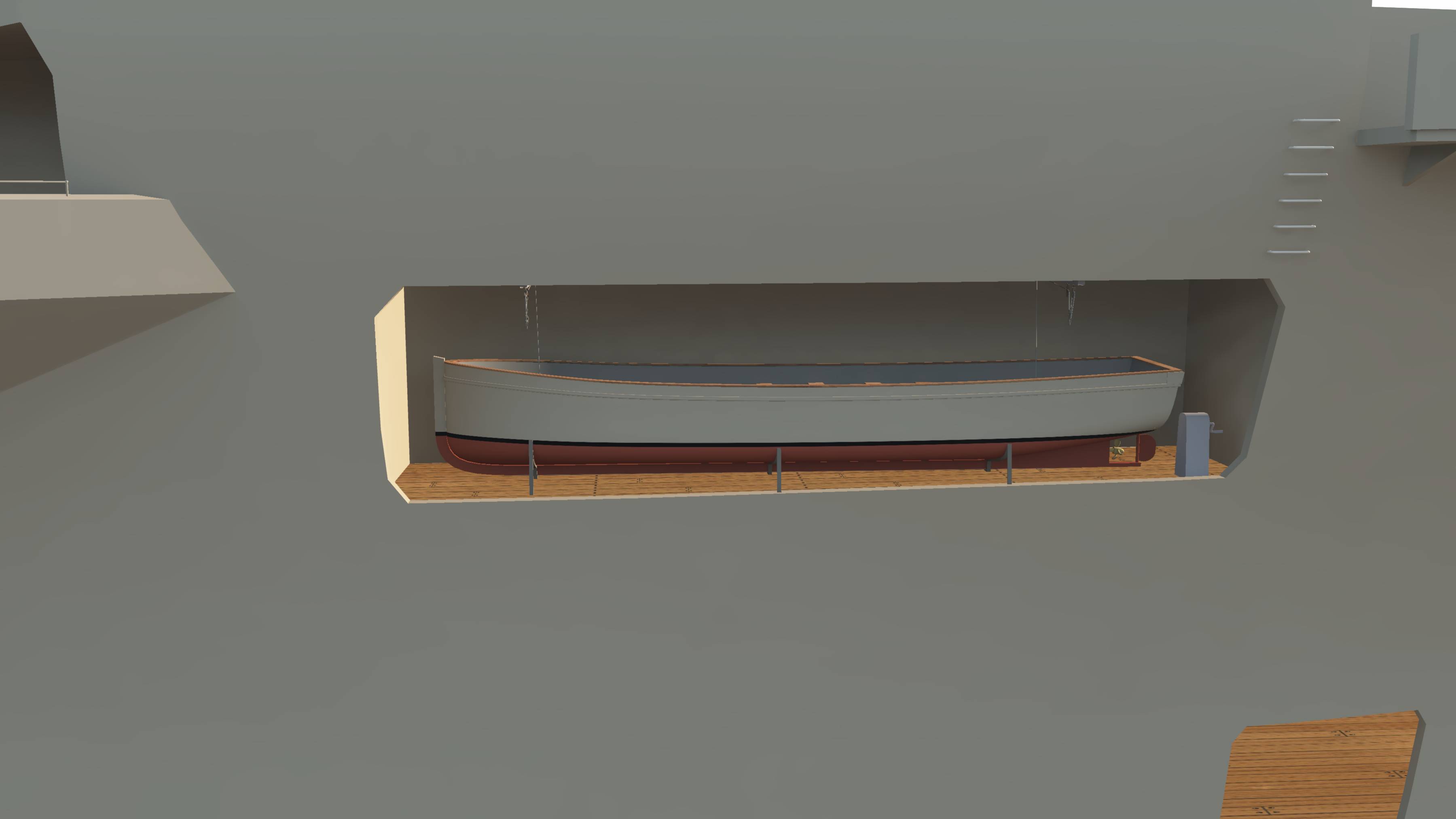 Alle Boote befinden sich auf dem Gang oder sind direkt am Schiffsrumpf angehängt!