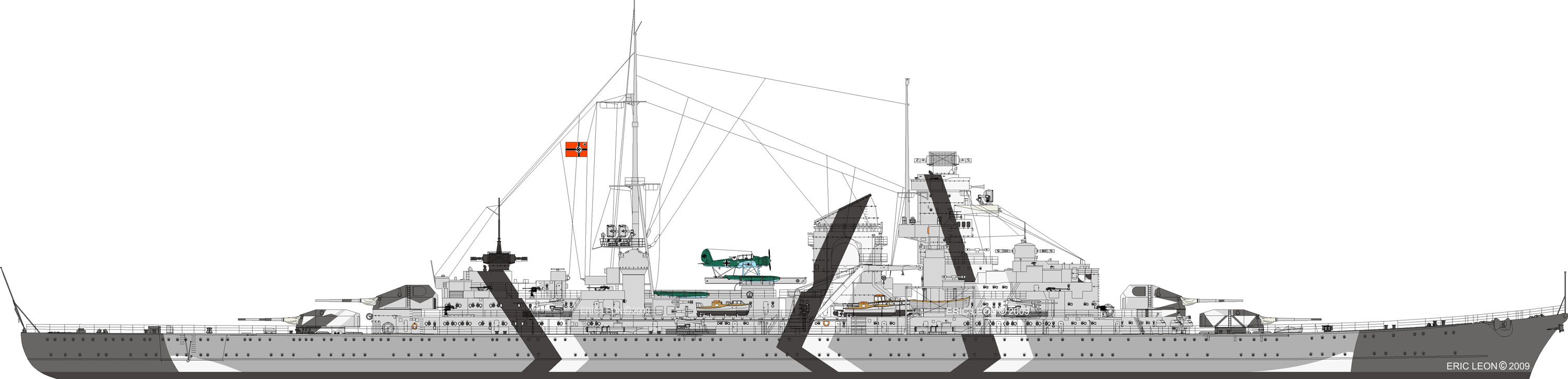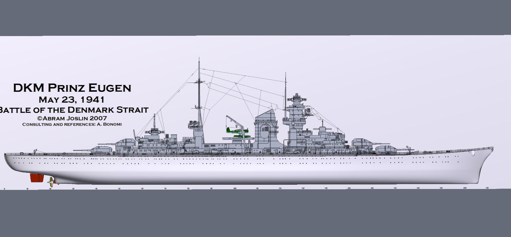Ich werde die Eugen übrigens in der Ausrüstung von 1941 darstellen, dazu passend das Tarnschema der Operation "Rheinübung".