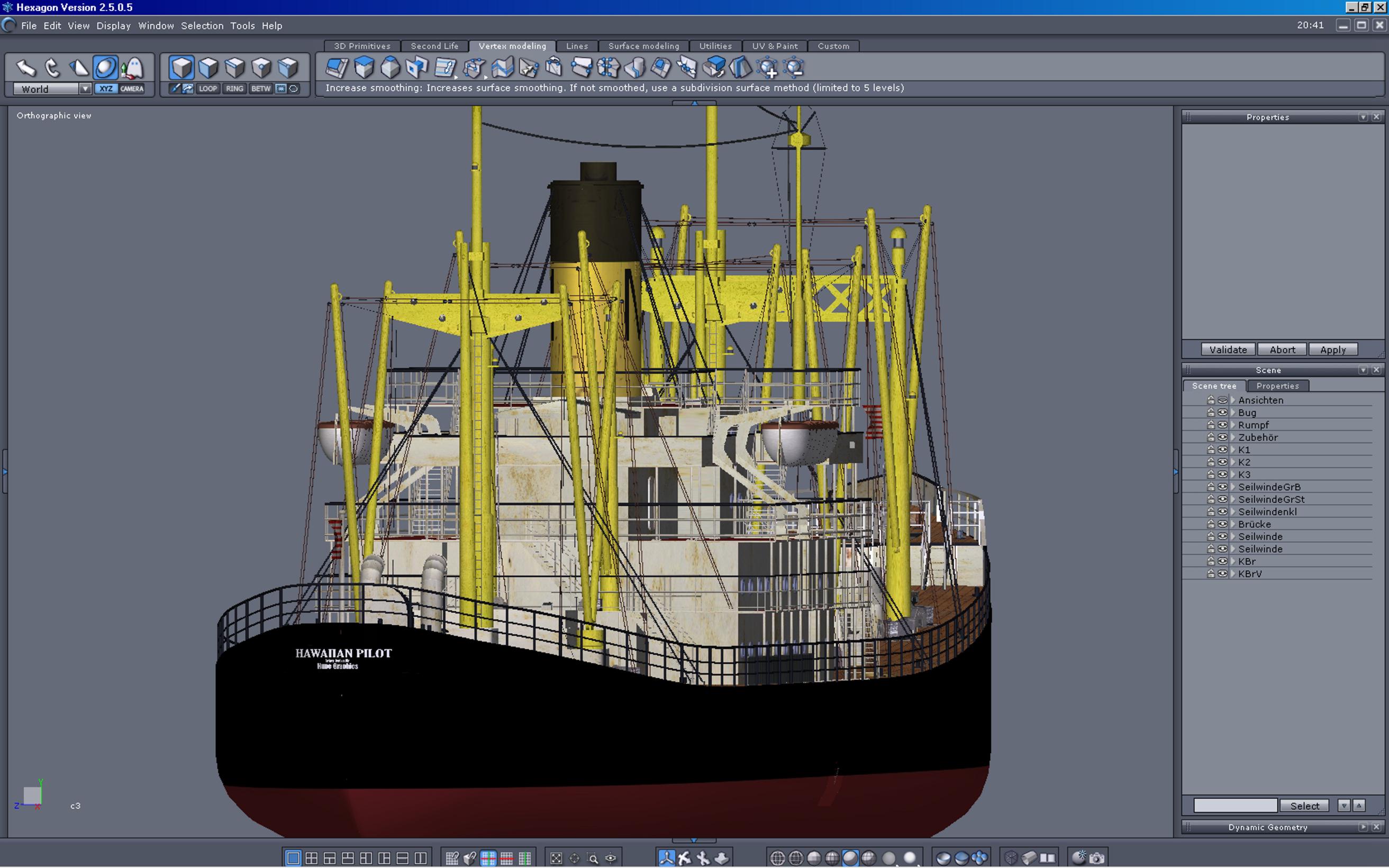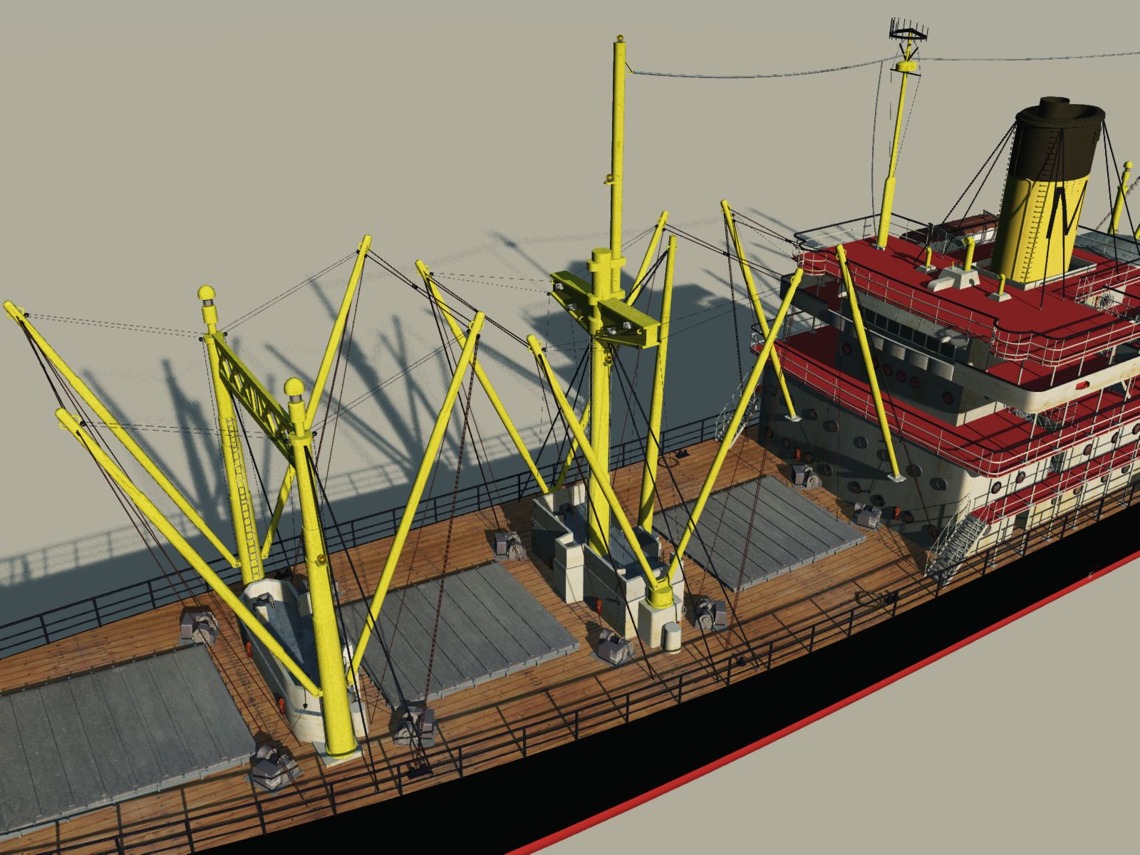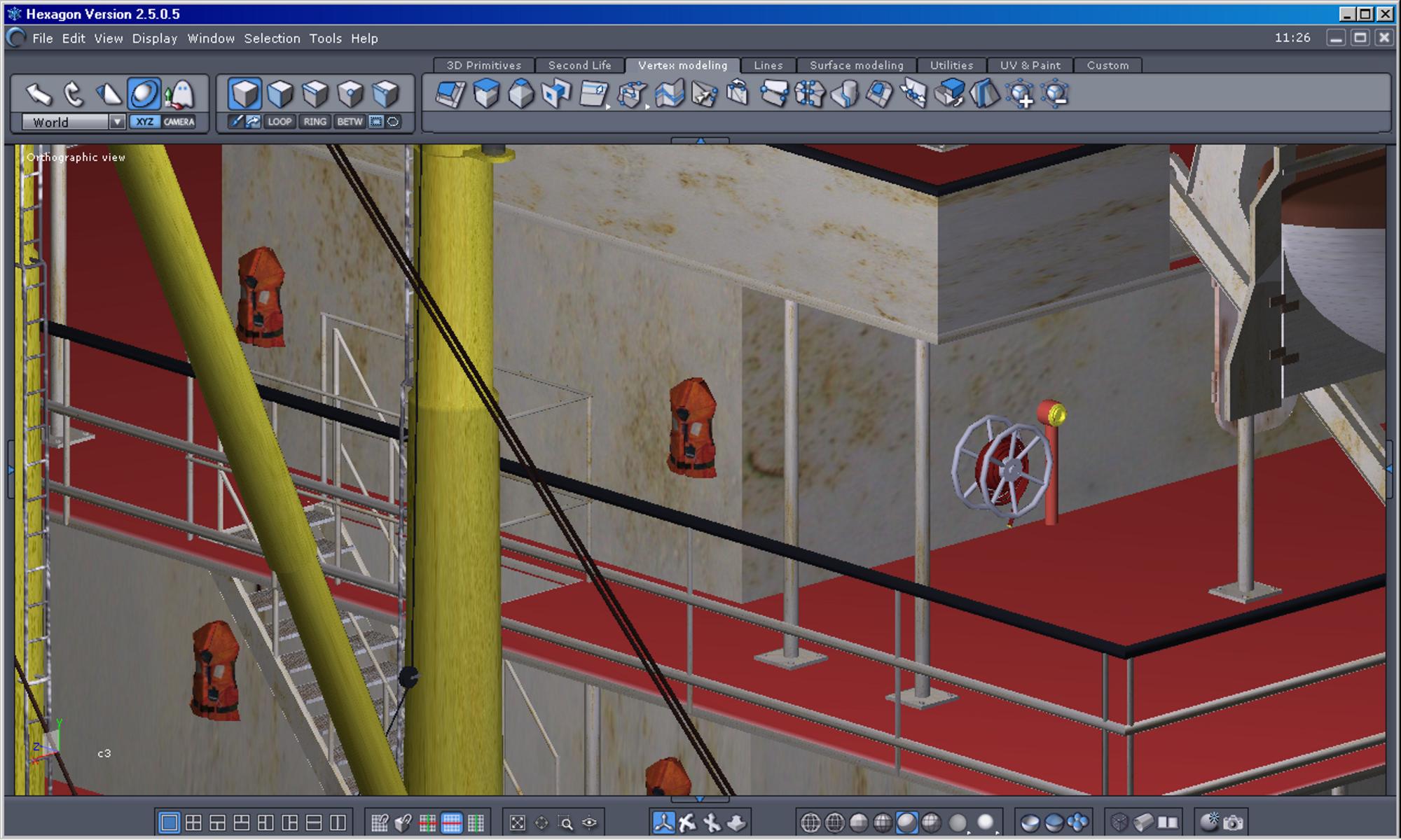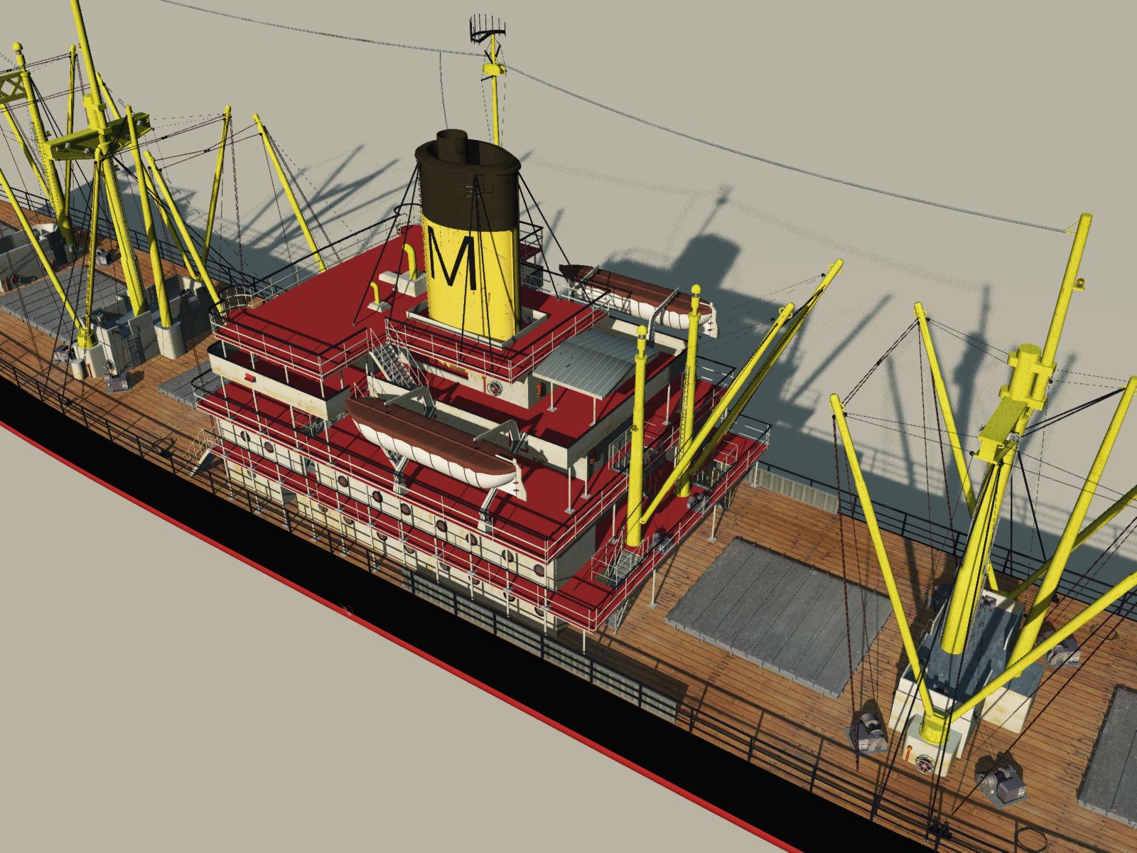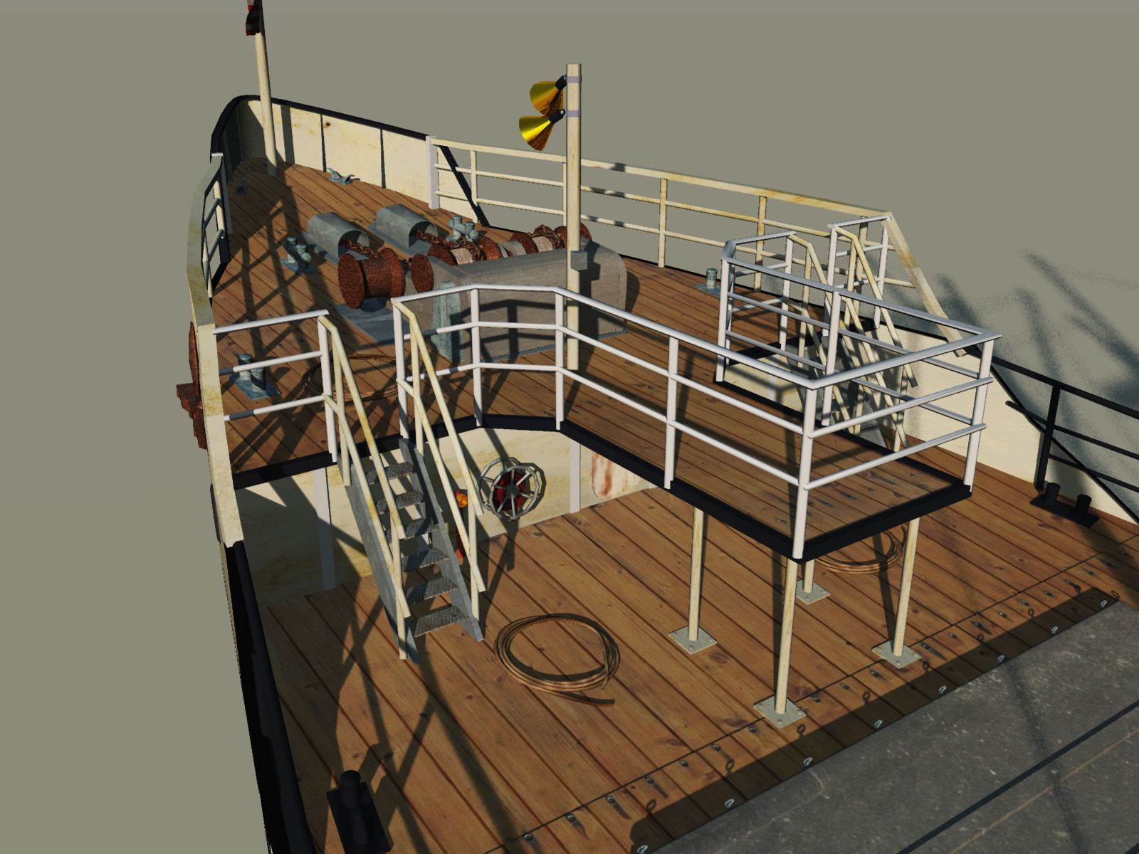 Als zusätzliche Details habe ich noch Feuerlöscheinrichtungen und Rettungswesten in LowPolybauweise angebracht.