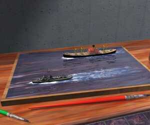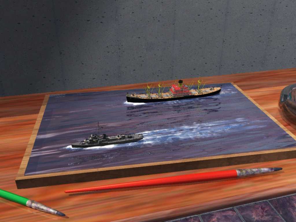 Am Horizont ist das Sehrohr von DJ´s U-Boot aufgetaucht. Der Zerstörer hat das selbstverständlich mit seinem neuartigen Sonar-Radargeräten ausgemacht und macht seine Fässer gefechtsbereit.