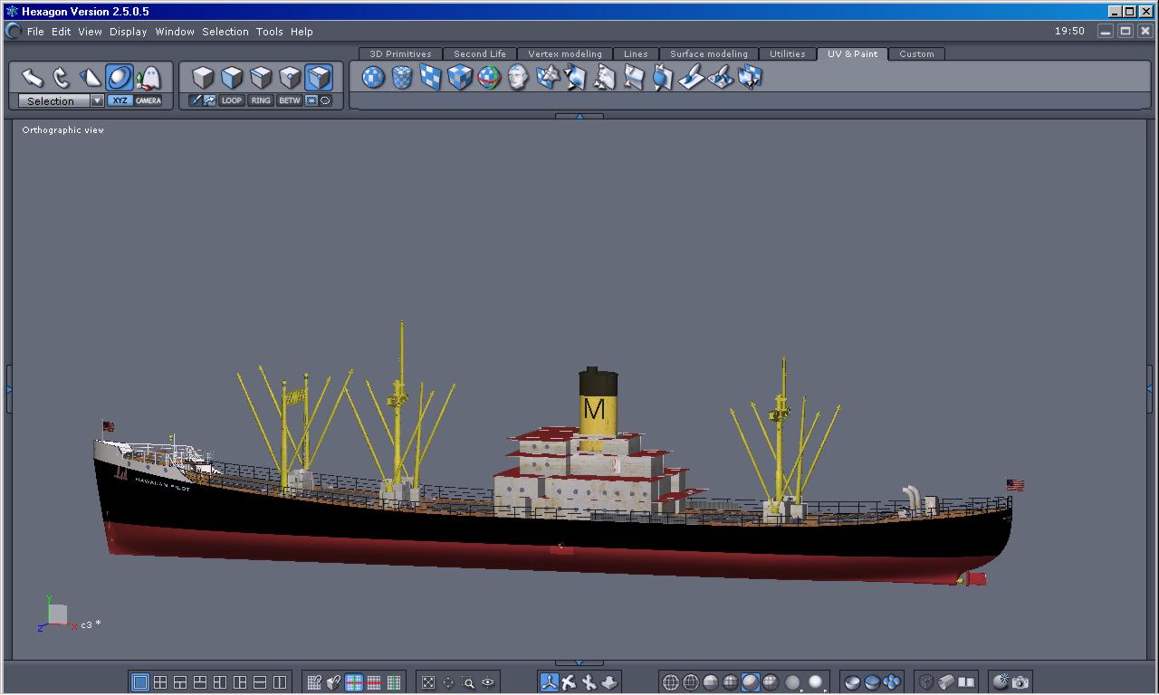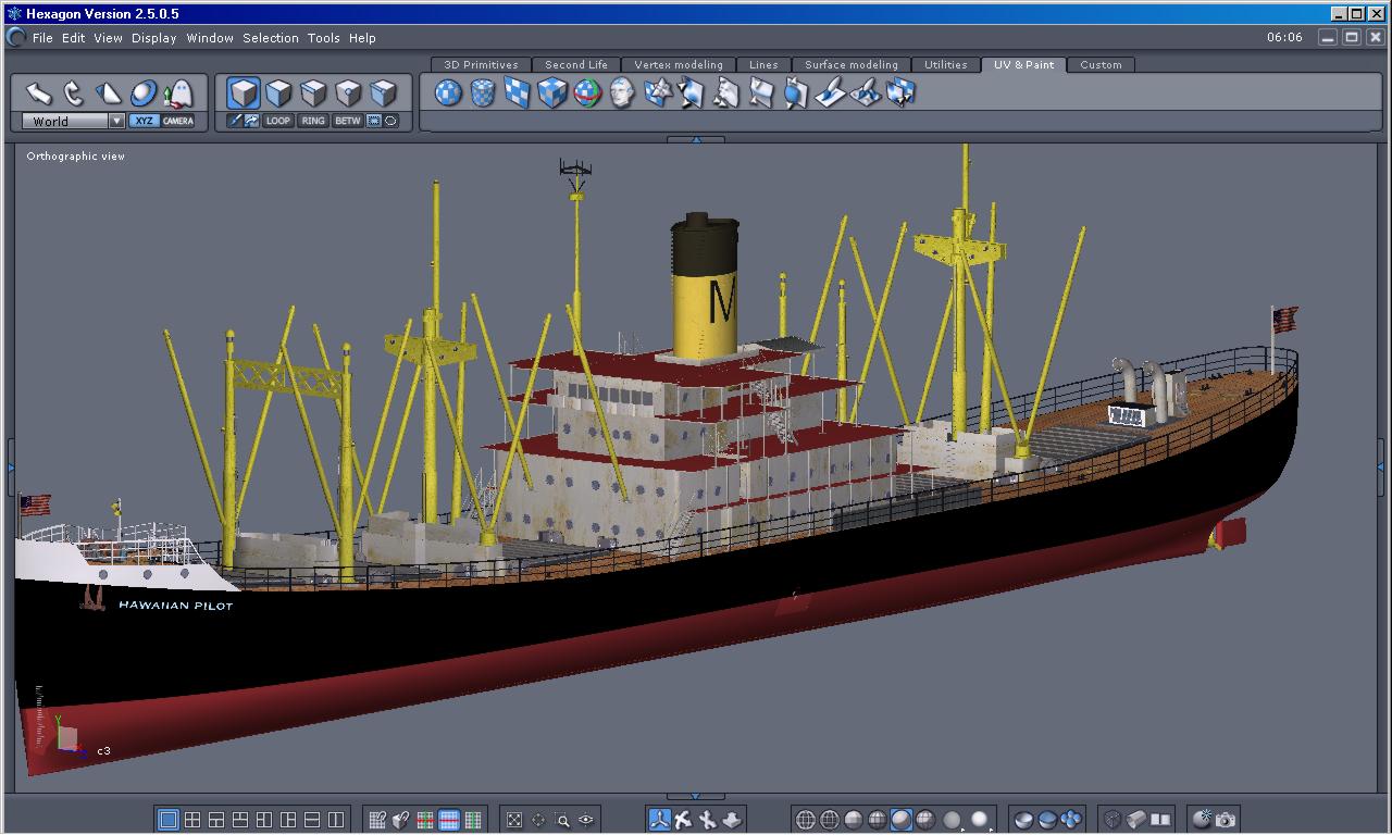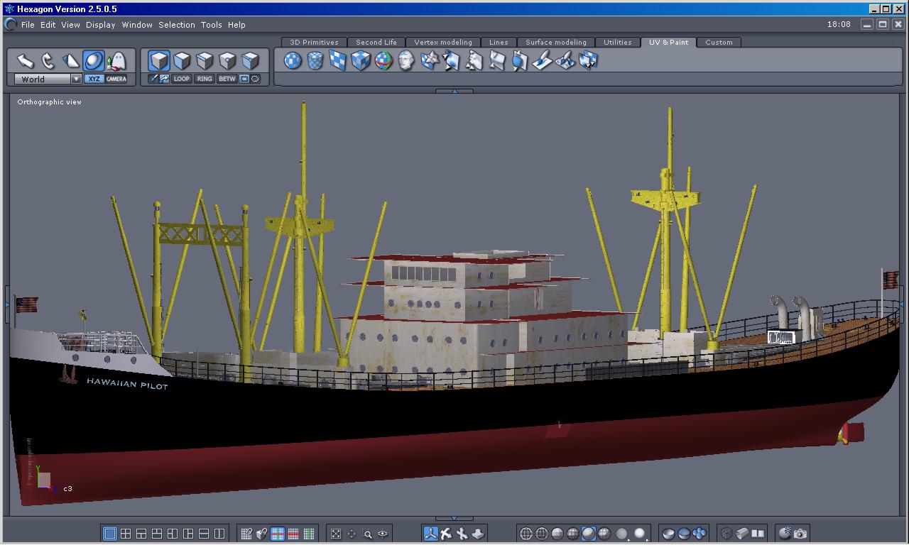 Ich lehne mich mal jetzt gaaaanz weit aus dem Fenster und verspreche ein Tut über die Erstellung eines Schiffsrumpfes zu erstellen. Daran anschliessend vielleicht auch noch ein Tut über die vielen Möglichkeiten der einzelnen Werkzeuge. Hmm, wenn ich es recht bedenke sollte ich damit beginnen ein Buch über Hexagon und die vielen Möglichkeiten mit diesem Progie zu verfassen.