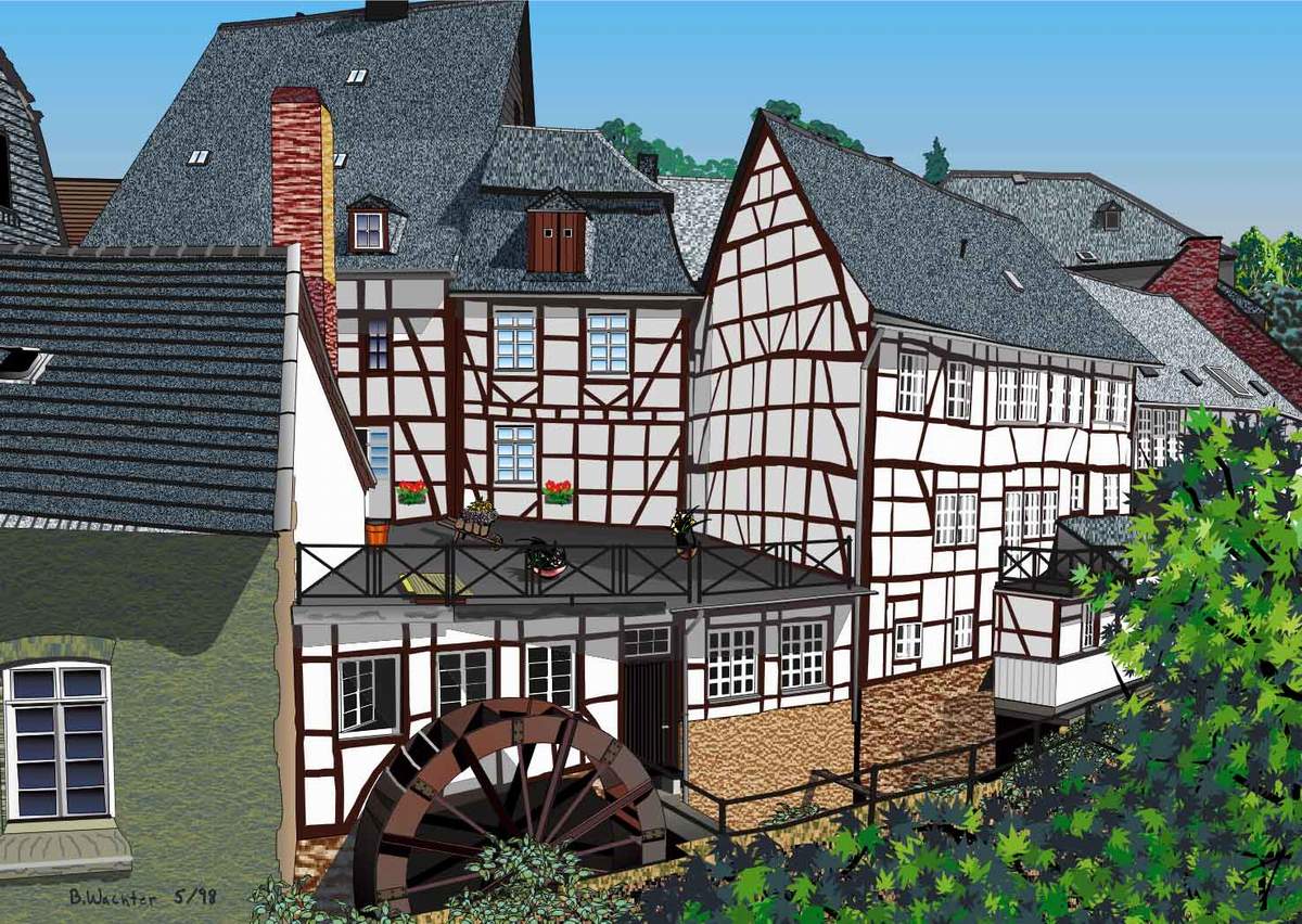 Ich geh mal davon aus das du das kleine Städtchen Monschau in der Eifel kennst! Da gibts eine alte Wassermühle nicht weit entfernt vom roten Haus.