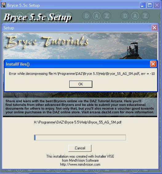 Denoch kann ich bei der nächsten Session Bryce ebenfalls nicht mehr starten - es sei den ich kopiere die alten Bryce-Dlls wieder zurück.