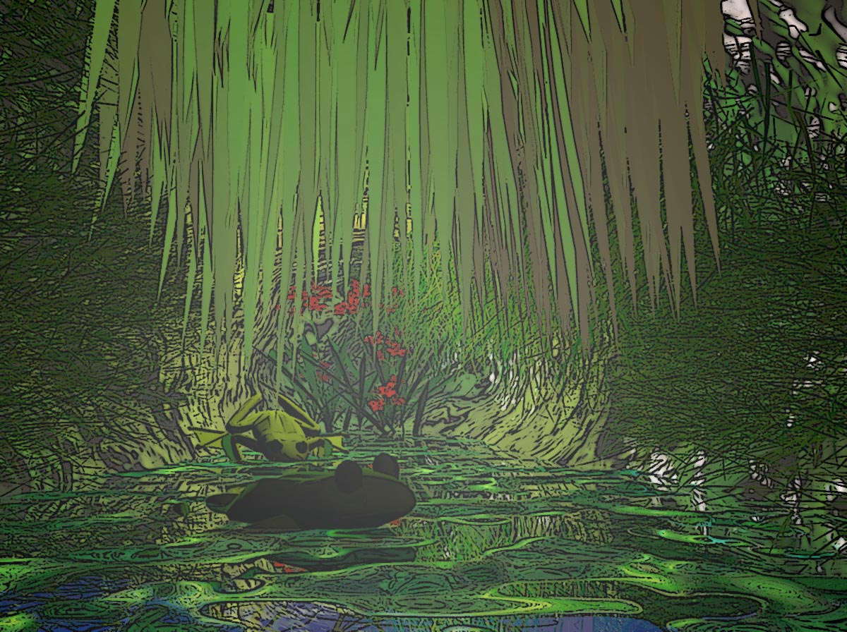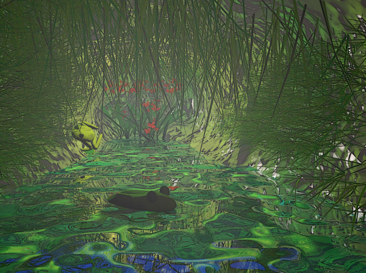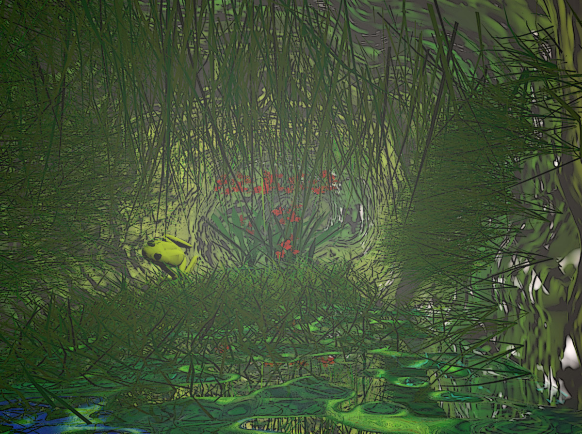 dr frosch ist umgesetzt und das "Gras" was es ja ist aber was anderes darstellen sollte ist ausgetauscht hoffe jetzt schaut es besser aus!