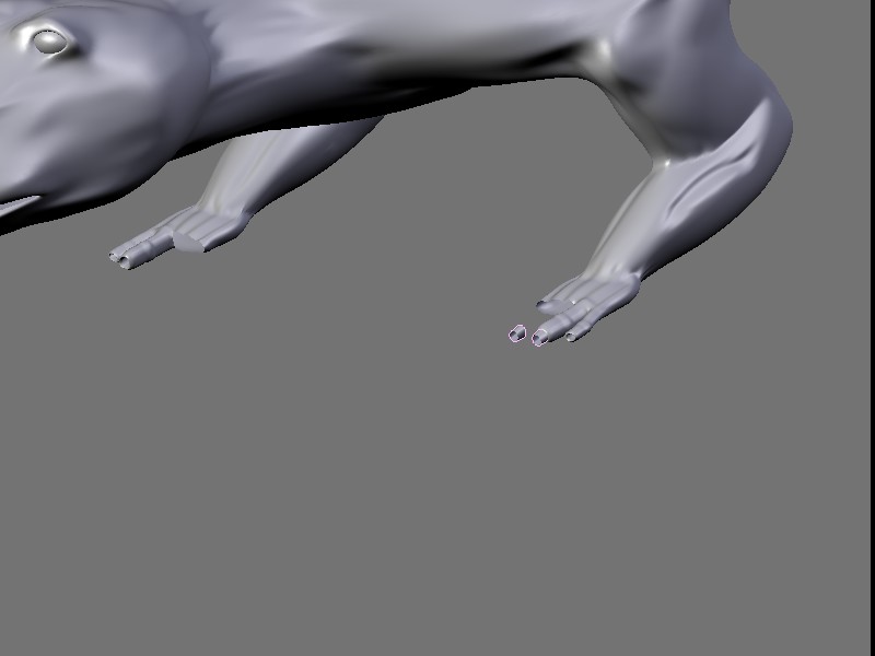 da kommen noch zehen hin:) is ja noch nen WIP, was die perspektive verschweigt: hinten gibbet noch gar keine Beine.