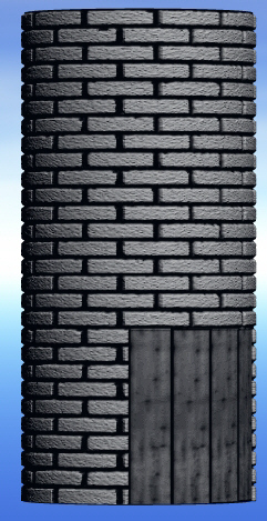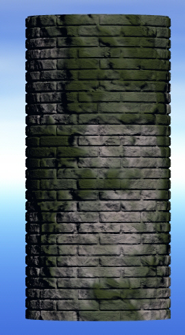 Anbei ein Turm mit der Bryce-eigenen Textur "waterline moss", das sieht doch schon nach einem richtig alten Turm aus, ehe dass man groß mit der Textur rumexperimentieren muss. Und dann habe ich in deine Mauertextur einfach mal ein schwarzes Feld gemacht, damit den Turm in Daz erstellt und ihn als obj exportiert. Anschließend in Bryce importiert und mit der im Prinzip gleichen map, nur mit Brettern statt scharzem Feld den Turm texturiert. Die Textur pass ohne weitere Anpassungen. Klar, die Steine sind noch nicht farbig, aber dazu hatte ich keine Lust.In diesem Forum http://forum.daz3d.com/viewtopic.php?t=45386&highlight=