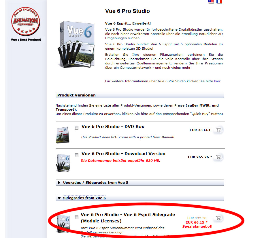 und Unten die "Sidegrade from Vue 6" Optionen aufklappen...