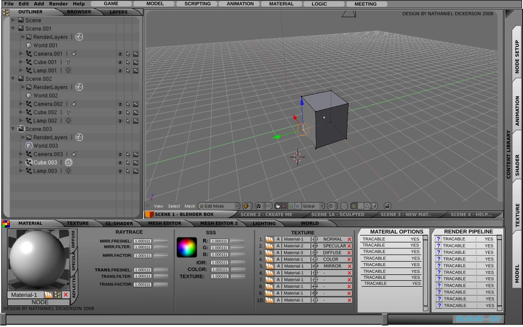 Als ich mit 3D Programmen anfing hatte ich damals mal Blender 2.1.x oder so in Auge gefasst, für einen Windows User anfänglich sehr gewöhnungsbedürftig bin ich nu froh das ich nu 5 Befehle auswendig kenne die ich über die schnelltasten erreichen kann ![]()