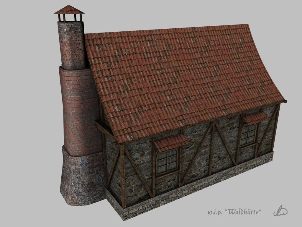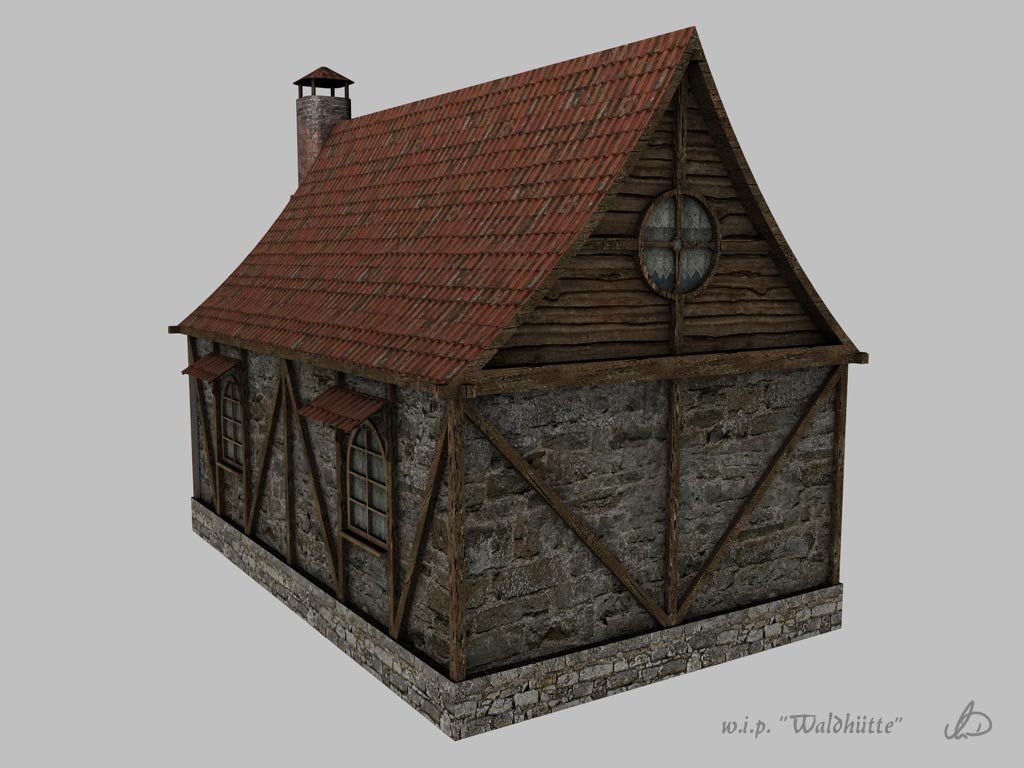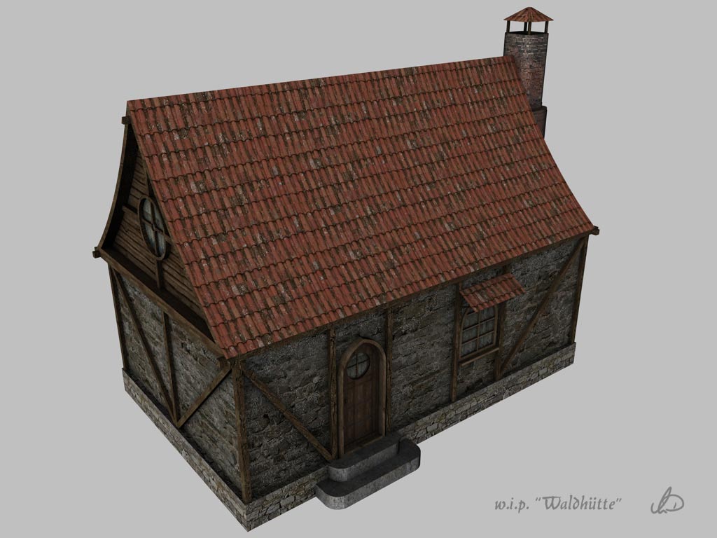 Ja, da das hier ja die W.I.P.-Abteilung ist, wird das Haus noch texturiert. Anschließend will ich es dann in eine Vue-Szene setzen.