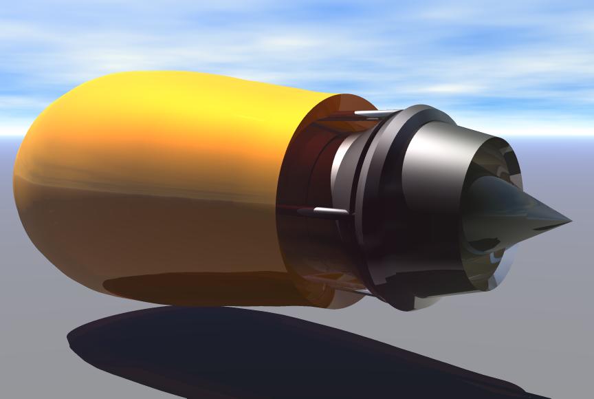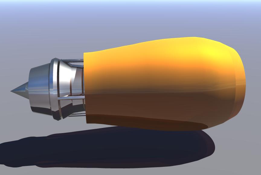 allerdings trat auch gleich nen problem auf, ich konnte irgendwie nix finden um in wings 3D ne vernünftige textur zu bekommen, also hab ich einfach das triebwerk und die verkleidung davon, seperat als .obj in bryce eingefügt, und da zusammengesteckt, um die einzelnen teile mit farbe zu bepinseln