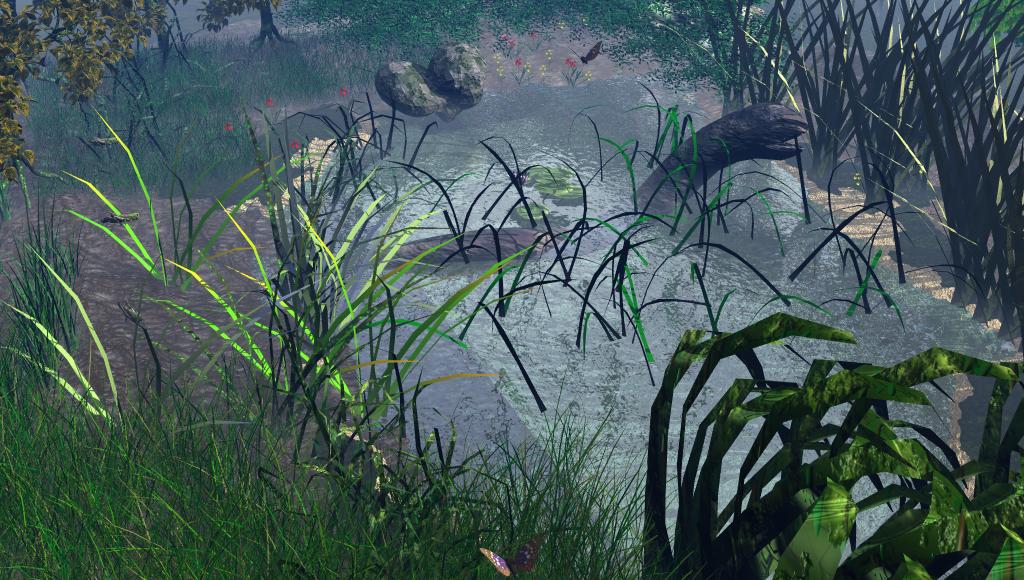 ähm der schmetterling kommt grade angeflogen^^ deswegen am rand des bildes und nein die steine schweben nciht das sieht nur so aus weil einteil unterwassser liegt und wegen den halem mache ich anders