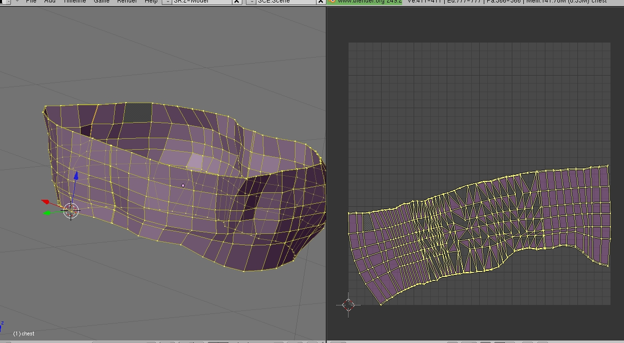 Ich sitze hier nun schon stundenlang und komme einfach nicht weiter. Für die Aiko3 (DAZ3D) modeliere ich ein Kleidungsstück. Dazu hab ich mir die Mesh der Aiko in Blender geladen. Alles gut und schön. Um mir Zeit zu sparen hab ich mal nur die rechte Seite modeliert. Auch gut. Nun habe ich mir mittels Shift+D und Mirror (im Edit-Mode) die linke Seite erstellt. Wenn ich nun aber die beiden mittels Make face zusammenfüge und dann ein UV Image erstellen will sieht die linke Seite im UV Editor komplett zerstört aus. Überall sind Löcher.