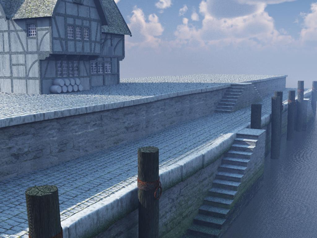 Säcke, noch mehr Fässer, ein paar Seeleute und Hafenarbeiter sind auch nicht schlecht, sonst sieht es