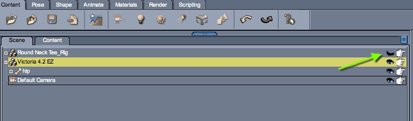 an Hand Deines Screen-Shots, sehe ich nun Dein Problem. Im Scene-Tab ist das Objekt ja schon drin zu sehen als "Round Neck Tee". Jedoch ist es aus welchen Grund auch immer ausgeblendet. Klicke dazu ganz rechts auf das kleine "zugekniffene Auge". Dann sollte es auch an der Figur sichtbar werden.