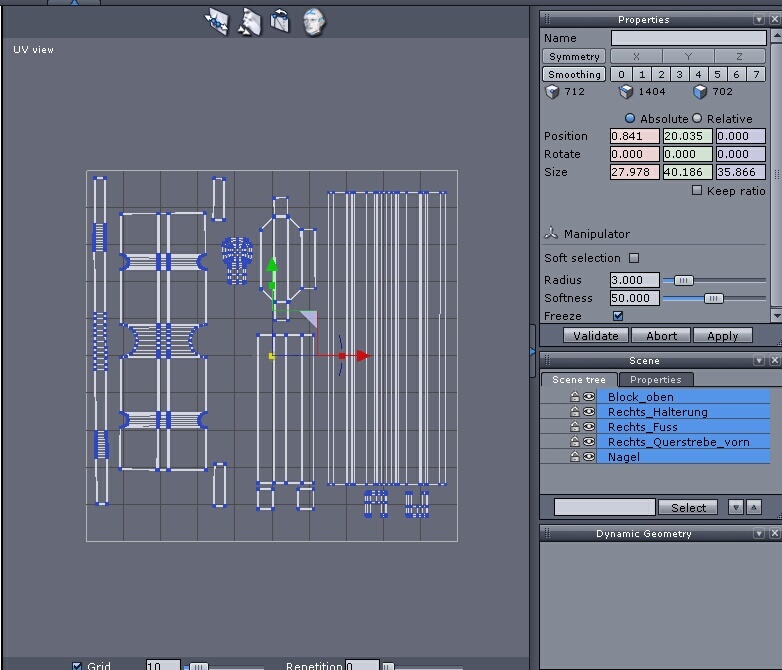 ja, das mit den unterschiedlichen Texturen für einzelne Seiten von Objekten macht Sinn. Habe ich gleich mit berücksichtigt beim unfolden. Das Problem war, dass mein Objekt aus mehreren annähernd ähnlichen Balken besteht und ich nicht jeden Balken separat als UV-Map speichern wollte sondern alle auf einer Map. Sonst wird es unübersichtlich.