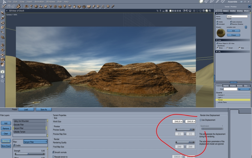 Ich habe ohne GI gerendert in der Einstellung rendert der alles relativ schnell .Ja ! auch ist das Terrain mit dem Carrara enstanden und garnicht so doof wie ich erst dachte