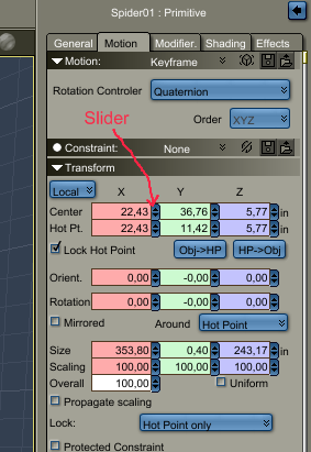 Auch die neue Slider Funktion gefällt mir. Man kann jetzt bei einem Objekt z.B unter Motion bei den Zahlenfelder sehr feinfühlig mit der Maus die Werte einstellen.Einfach mit der Maus auf den Slider, Taste drücken und bewegen oder Mausrad für grobe Verstellungen. -