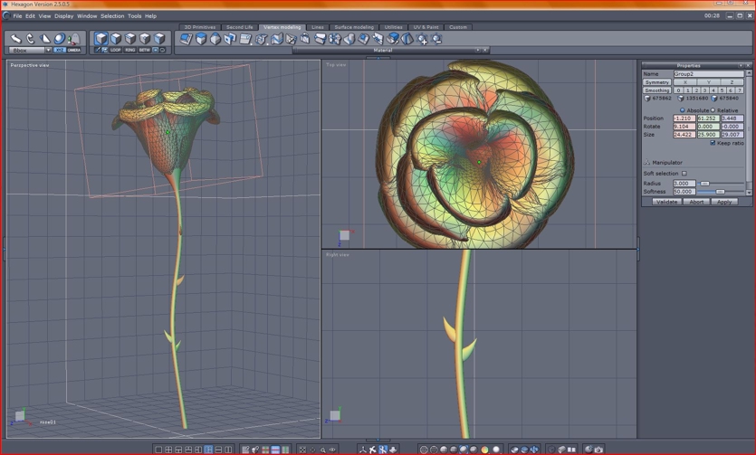 Die "Löcher" sind eigenlich nur glöschte "Faces" die ich dann durch "smoothen" und dem "Thickness"-Tool