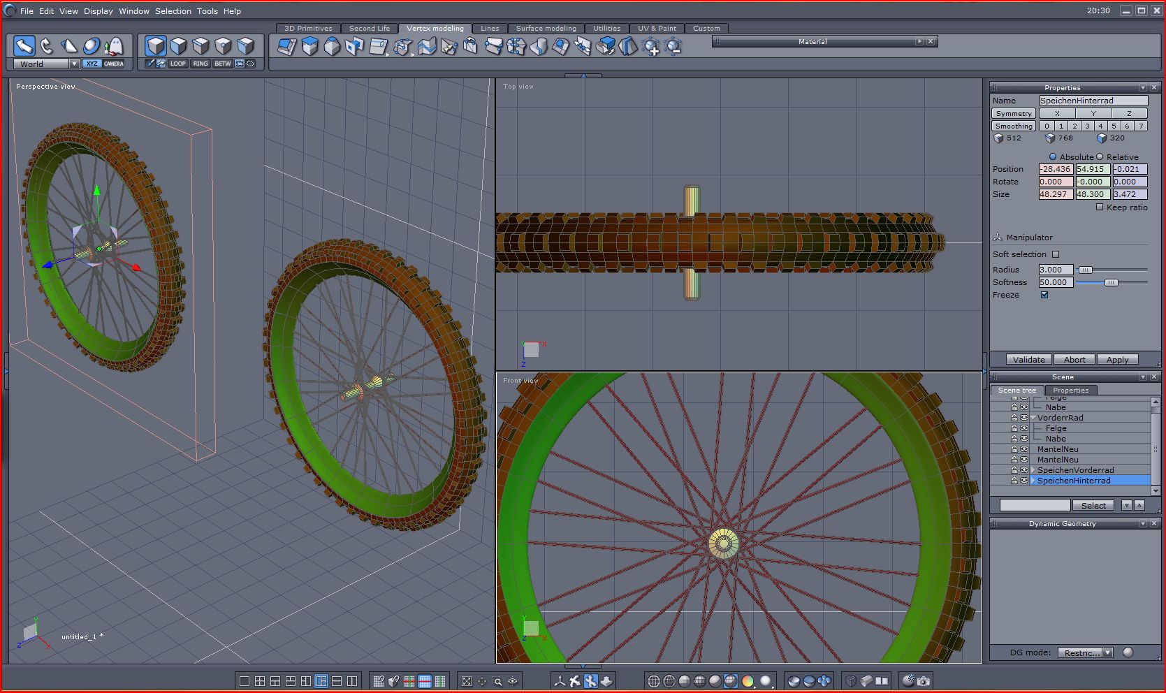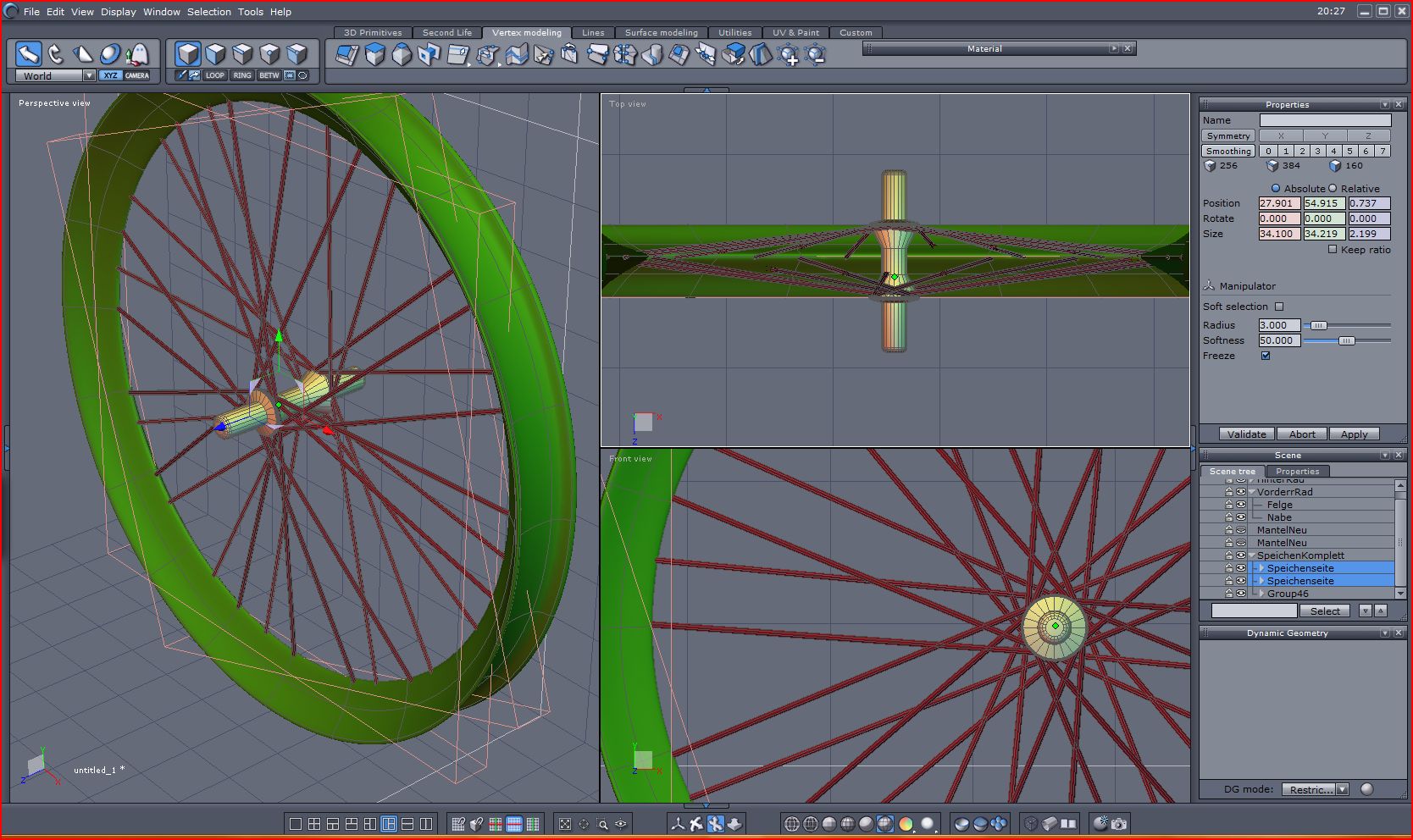 alle Speichen als Gruppe zusammenfassen und mit dem Symmetry-tool kopieren.
