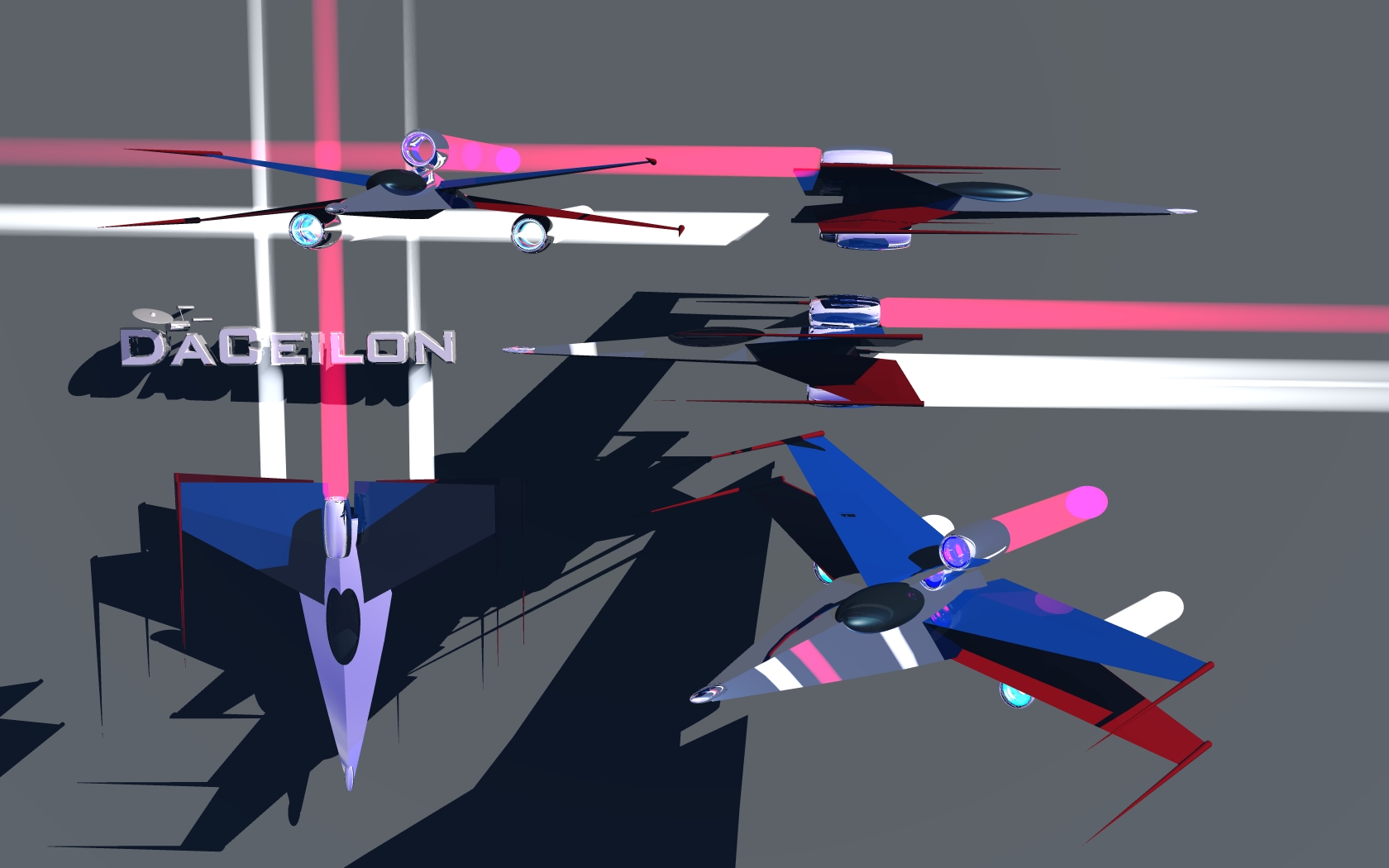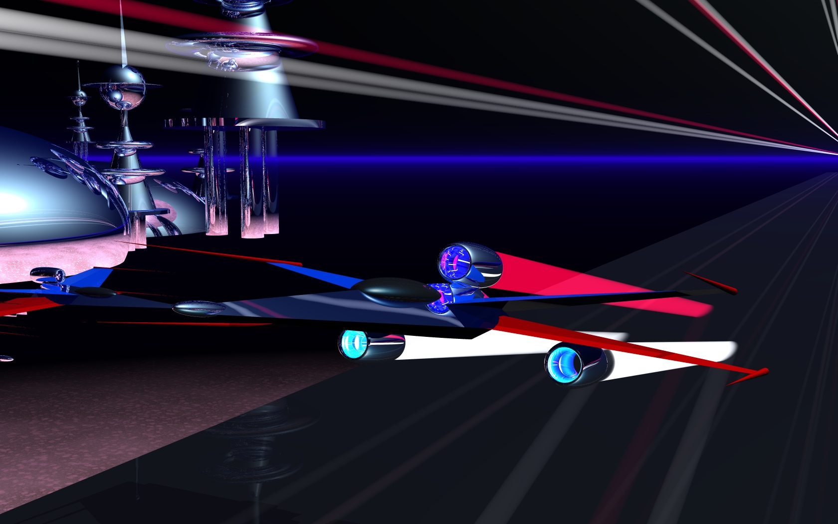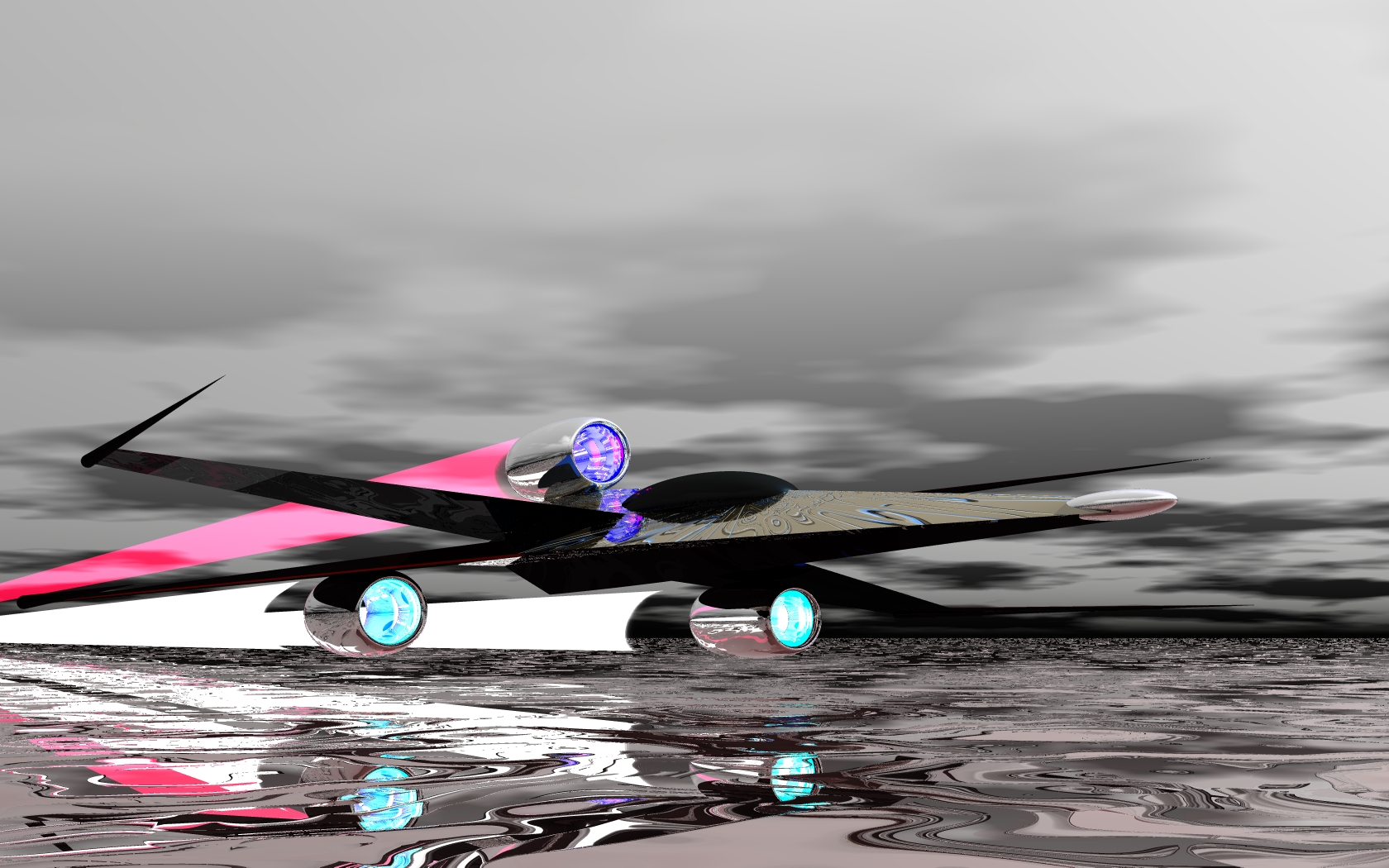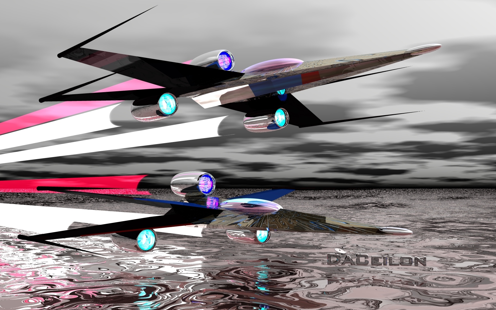 Der Rumpf und die Tragflächen hab ich in AOI erstellt, in Bryce dann modelliert und die Düsen