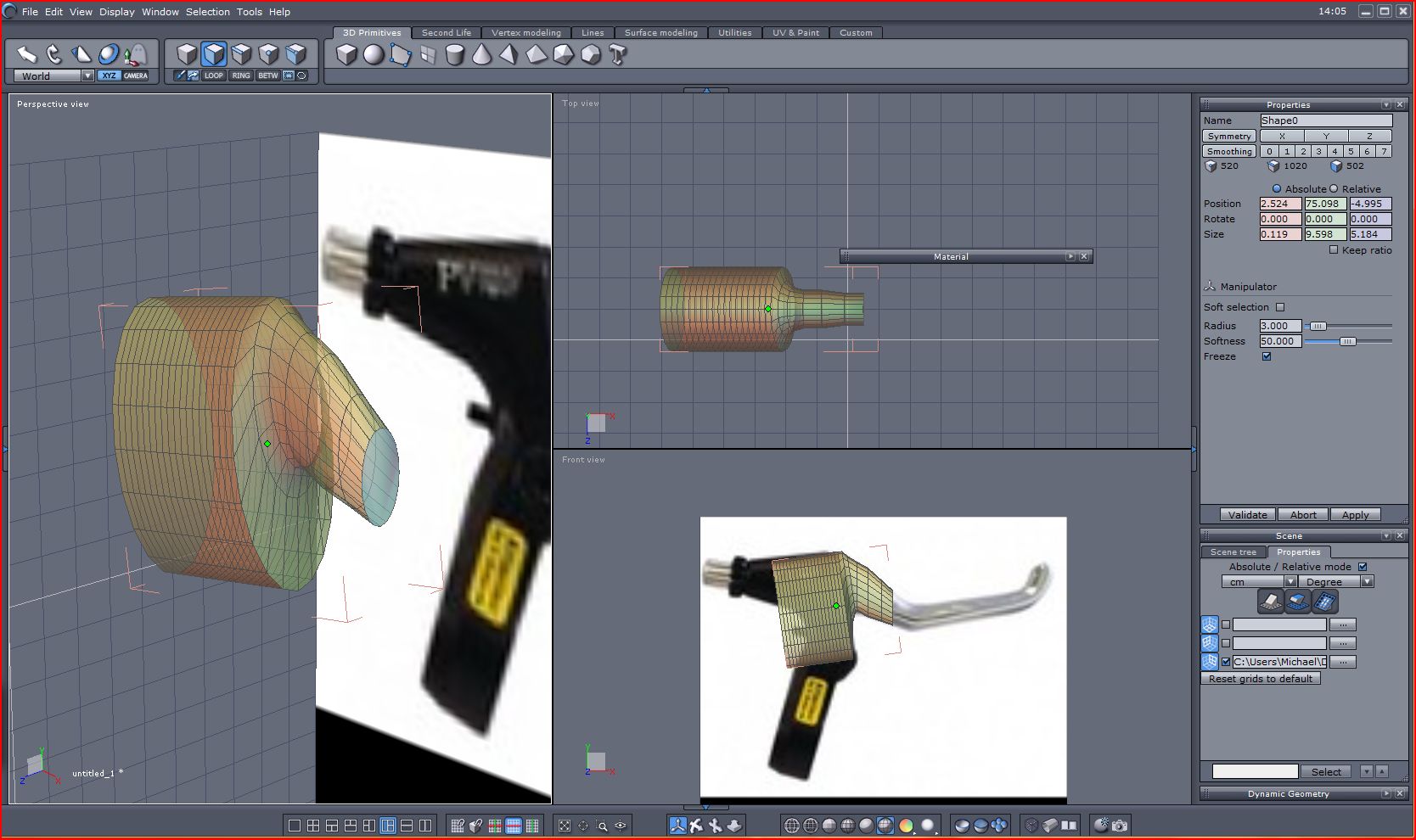 Dazu habe ich wieder Refferenzbild geladen und Über einen Zylinder losgemoddelt... ![]()
