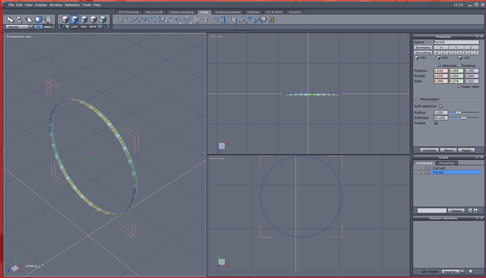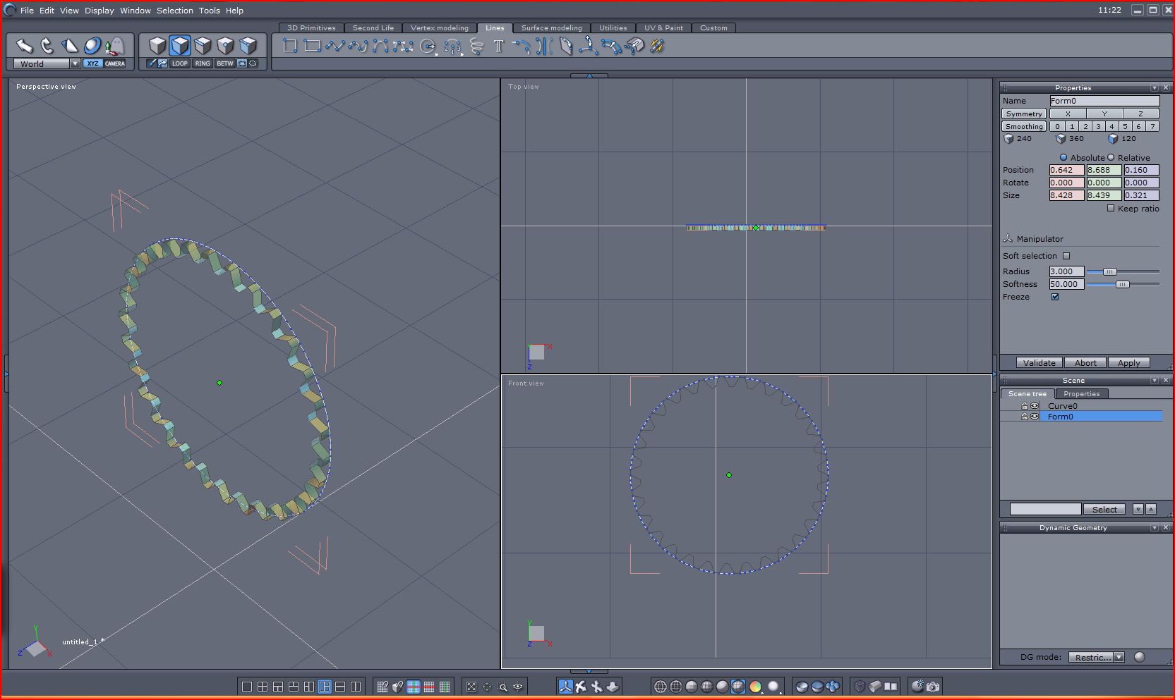 1. Im "Linemodus" einen Kreis erstellen mit 120 Punkten.