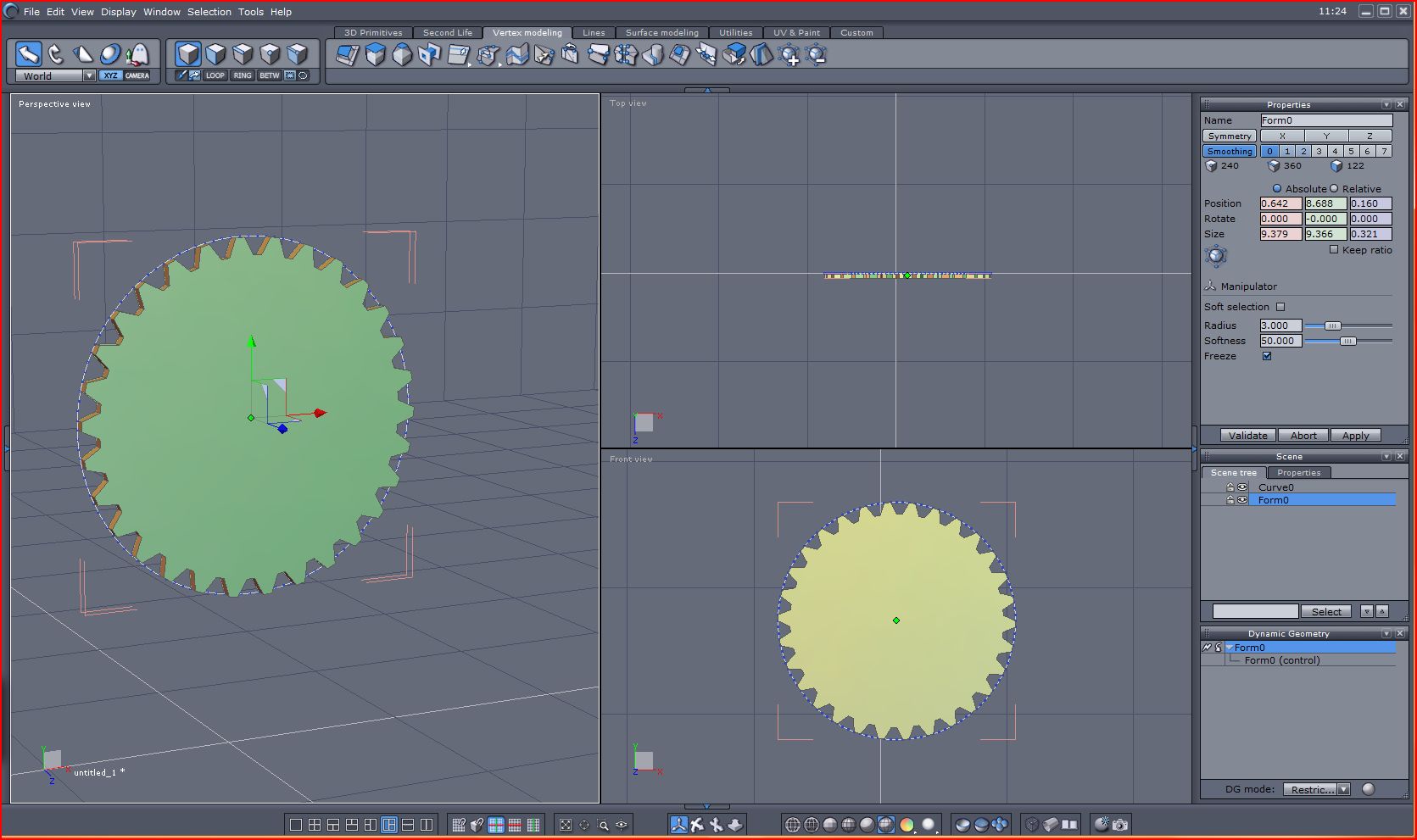 Aber es kann jeder beliebe Zahnkranz modelliert werden, wenn die Punktezahl des Startkreises nur durch vier teilbar ist...