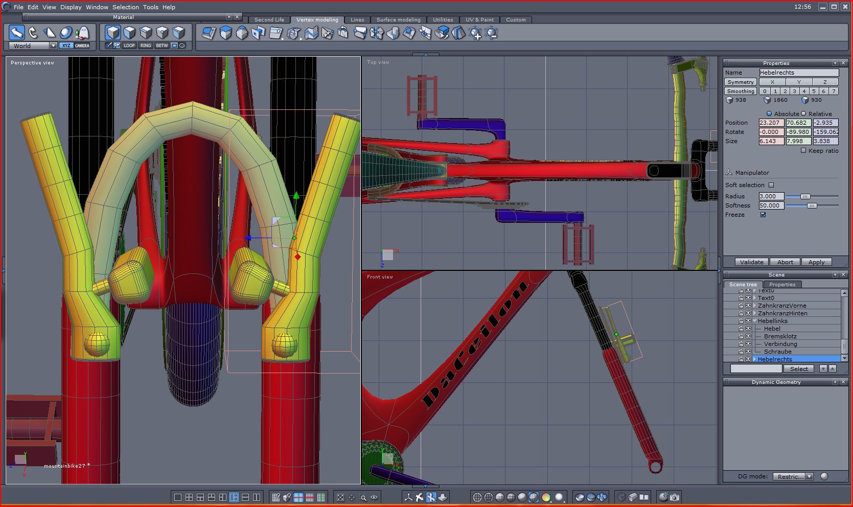 Die Bremshebel hab ich seperat gemoddelt und dan mit "Copy and Paste"