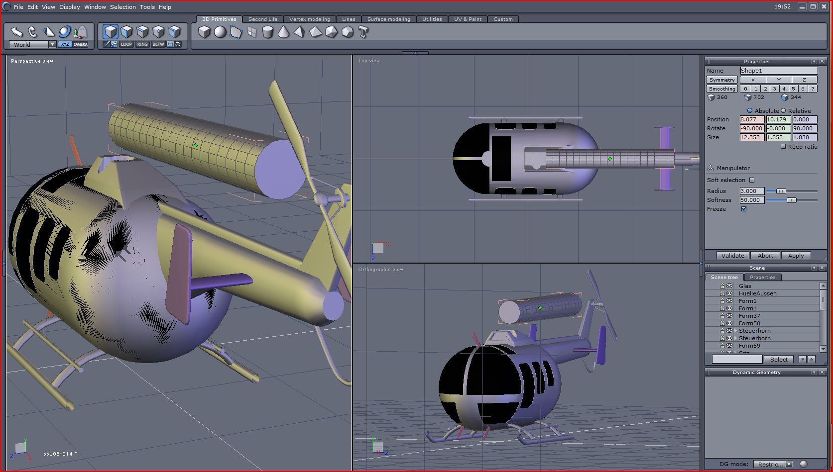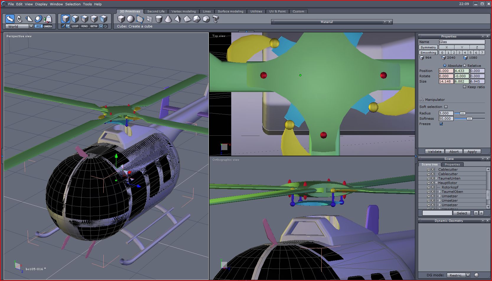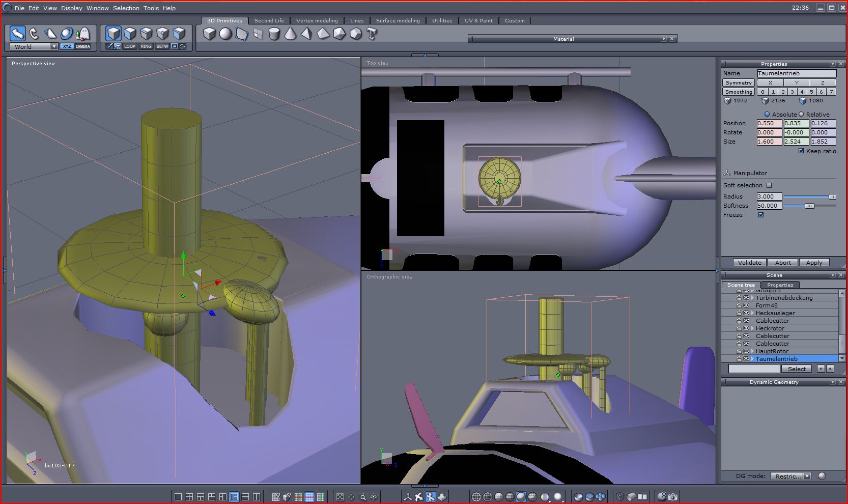 3. ... den Rotorkopf kopieren, wieder über "boole" den unteren Teil wegschneiden. Kopieren, um 180 Grad drehen und zusammenfügenfügen