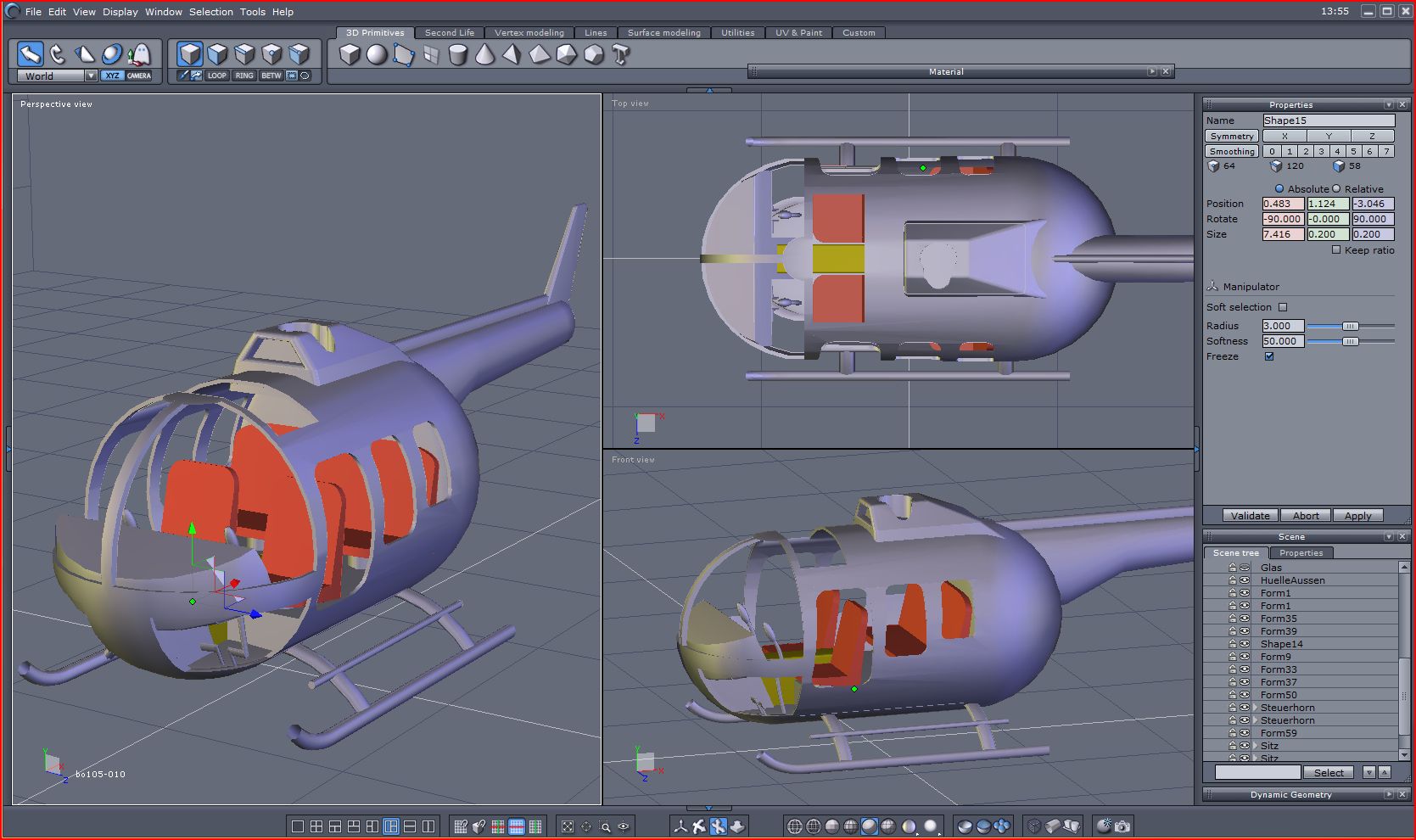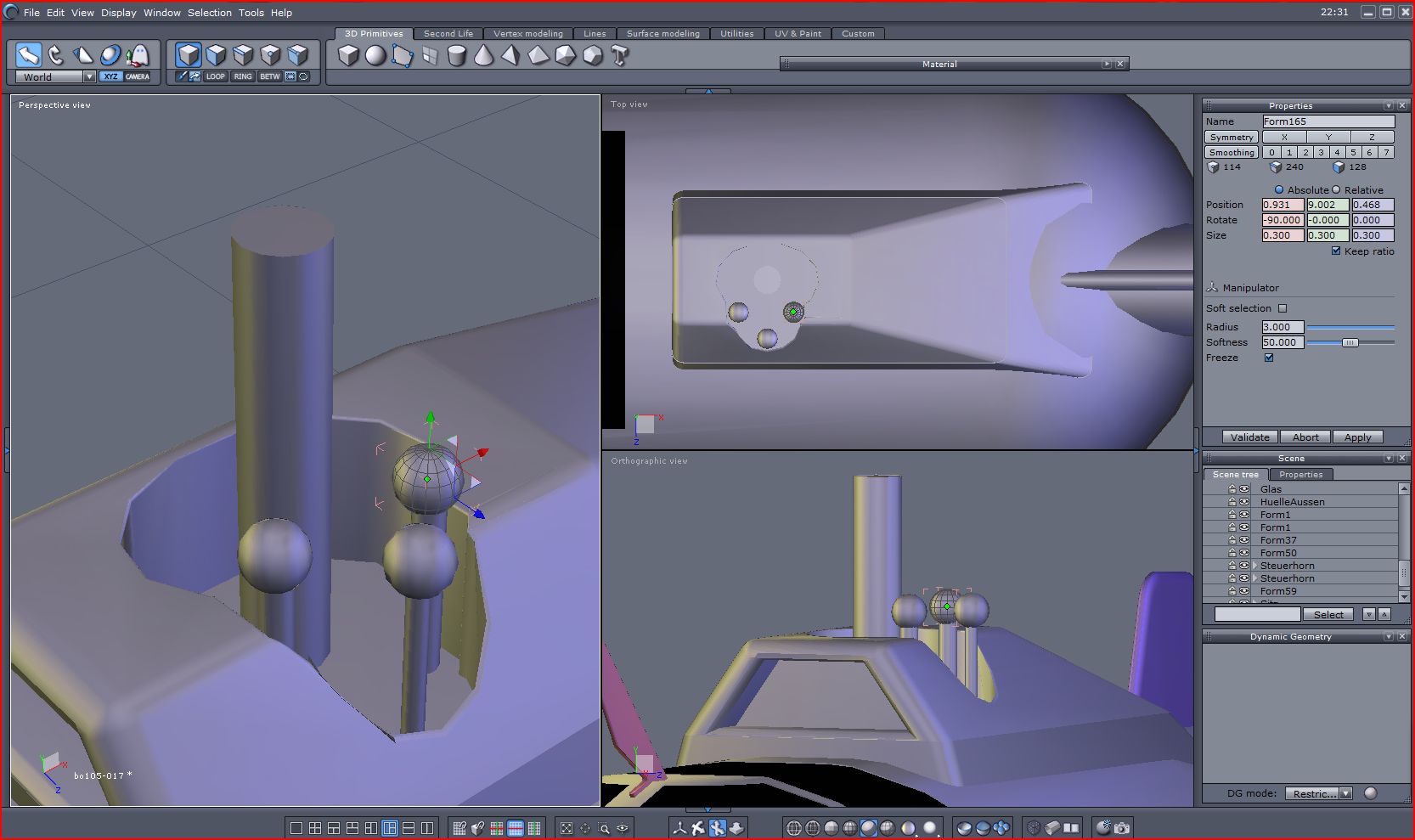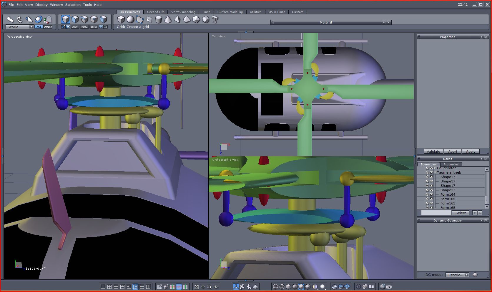 3. ... den Rotorkopf kopieren, wieder über "boole" den unteren Teil wegschneiden. Kopieren, um 180 Grad drehen und zusammenfügenfügen