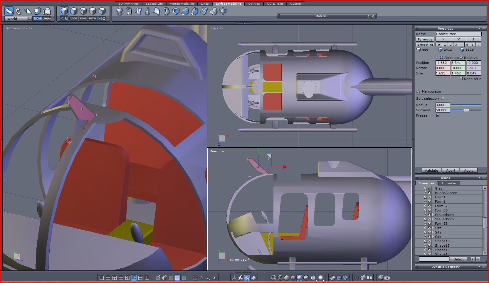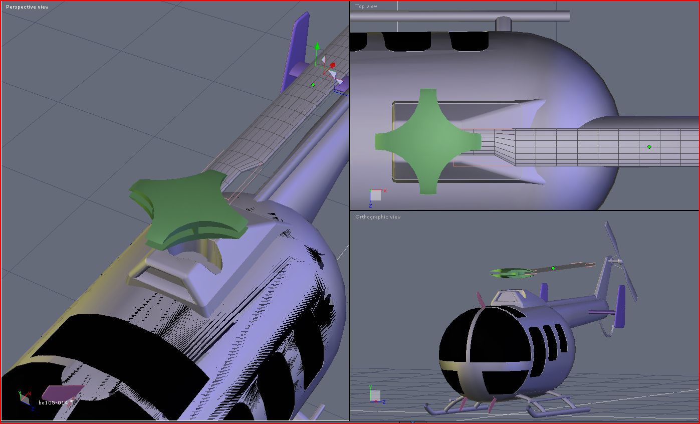 01. Der "Cabelcutter" ist das kopierte Hekrotorleitwerk mit einem konischen Ausbruch. Danach den Cabelcutter positioniern.