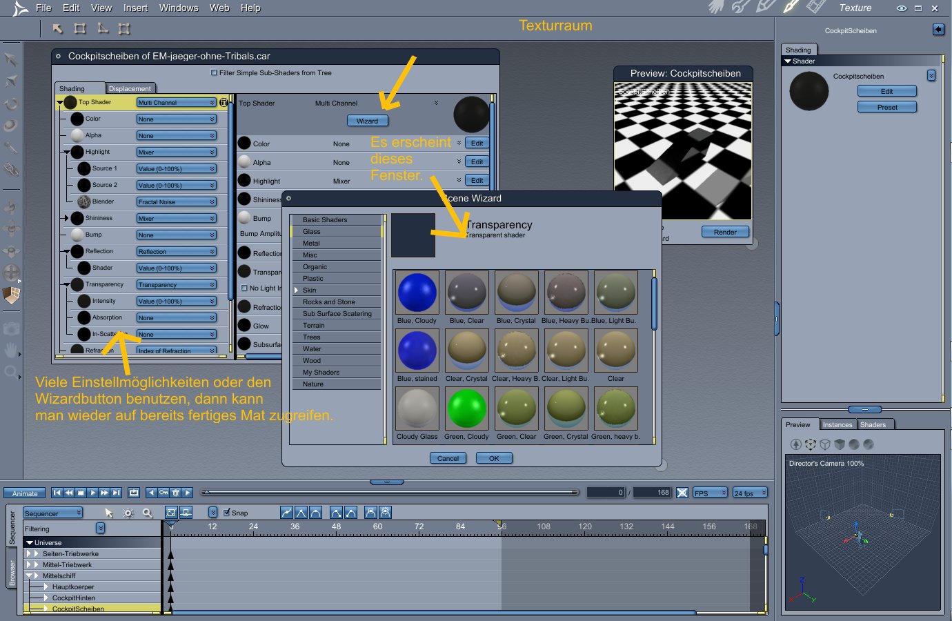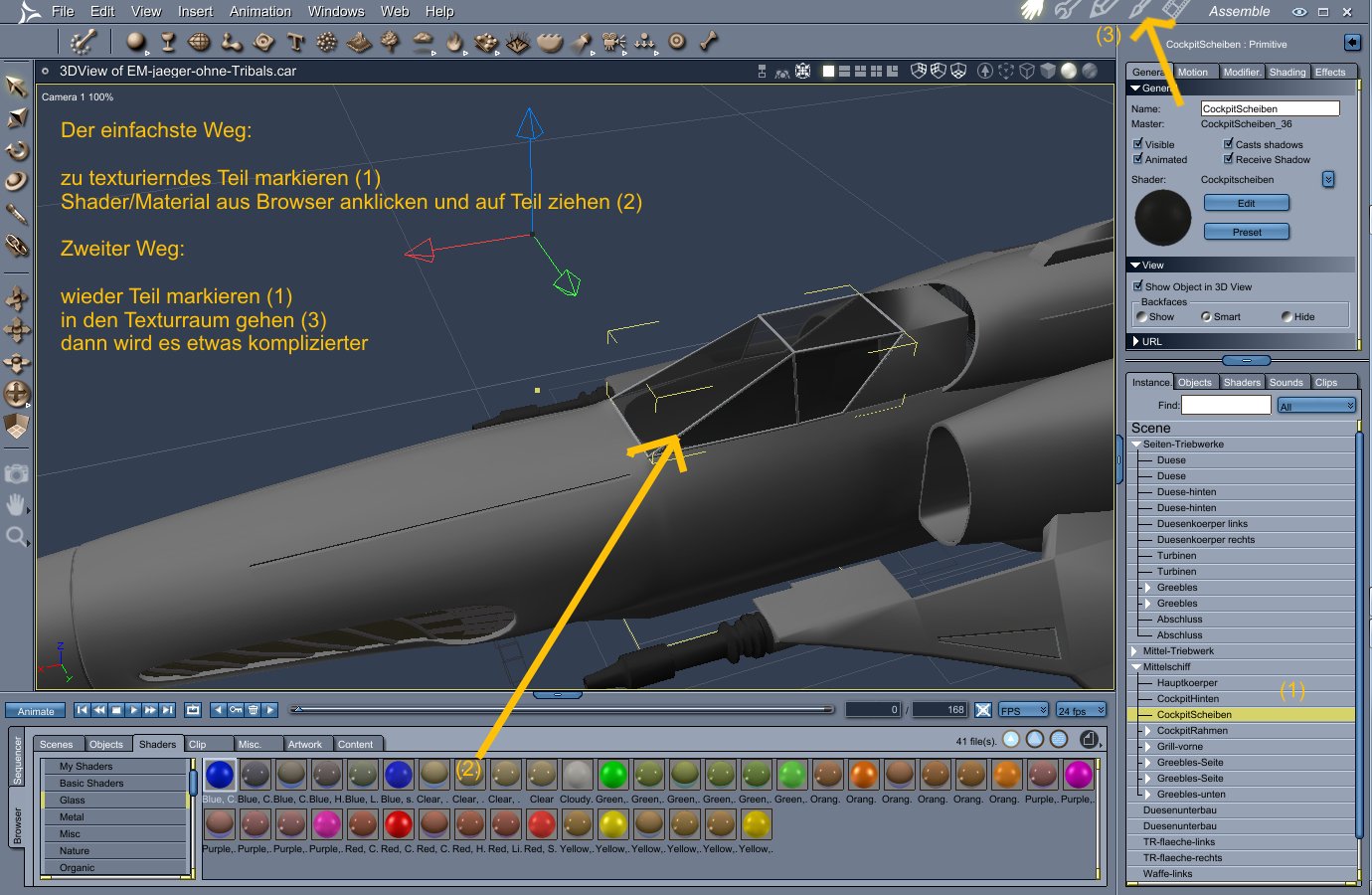 Kann mir jemand erklären, wie ich in "Carrara" dem schwarzen Bereich eine nue Textur zuweisen kann?