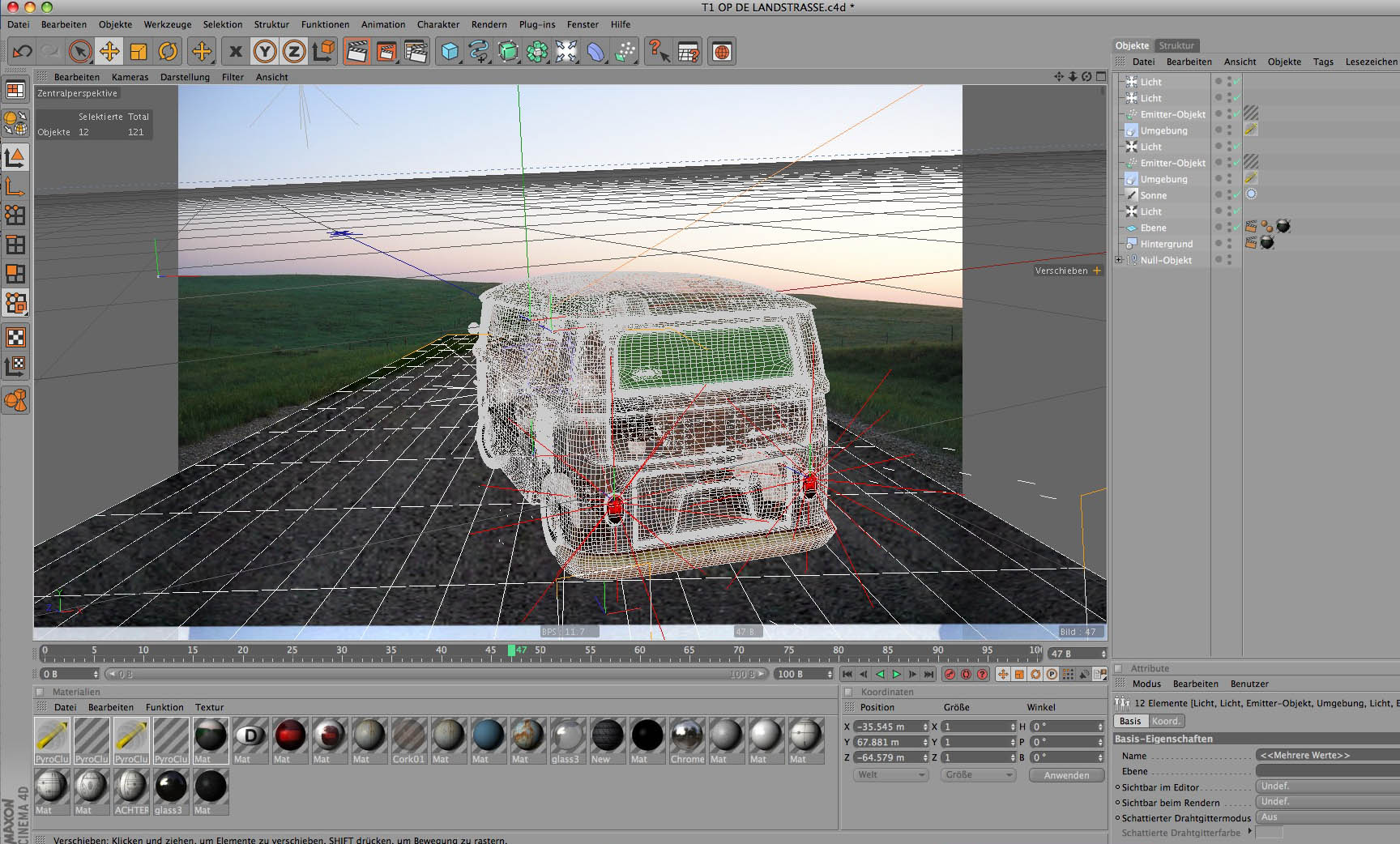 meistens muss man sie noch zurecht schneiden in Photoshop damit die Proportionen stimmen, man läd sie in Cinema 4d rein und fängt an zu Moddeln, die Technik nennt man Poly bei Poly mit anderen Worten Punkt für Punkt man muss dafür sorgen das die Punkte so platziert werden das sie sowohl von rechts links oben unten unten stimmen(das ist die Schwierigkeit), es hilft unheimlich einige Bilder des Fahreugs im Internet an zu schauen damit man die Linien einigemassen gut hinbekommt, danach müssen die Lichter eingestellt werden und einen Hintergrund gesucht werden.