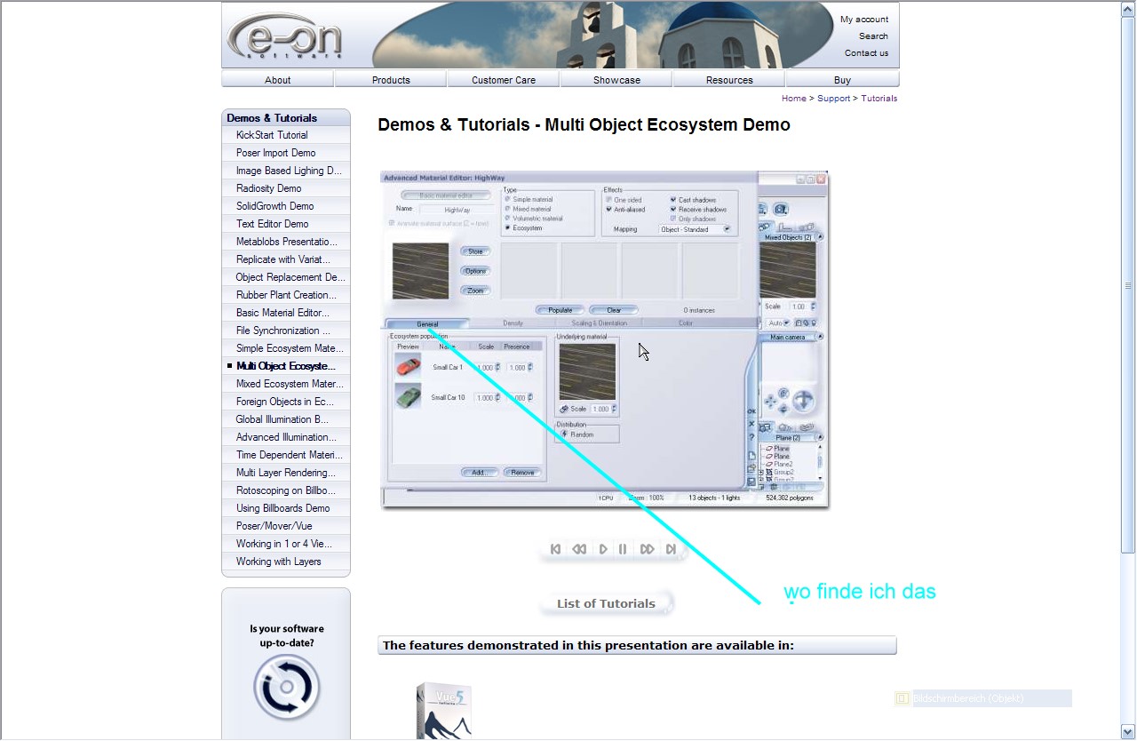 nun habe ich fast alles durch war auf der hp von e.on und habe mir dort die tutorials angeschaut aber was dort steht finde ich bei mir nicht.auf dem ersten bild ist von der e.on seite und auf dem 2 bild das ist wenn ich es öffne aber ich kann nichts finden wo ich bäume oder andere objekte einfügen kann ich komme nicht weiter damit.das feld generel finde ich nicht.