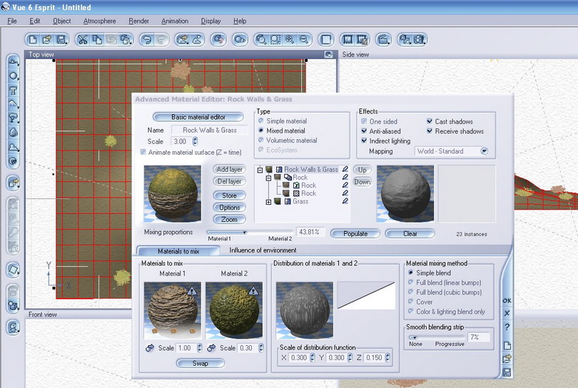 EcoSystems hat Esprit erreicht! Vue 6 Esprit erlaubt es jedes EcoSystem Material* zu laden um Ihre Szene mit millionen von Pflanzen, Steinen und anderen Objekten zu populieren. Wählen Sie einfach aus der EcoSystem Material Bibliothek oder erweitern Sie diese mit anderen Pflanzen.