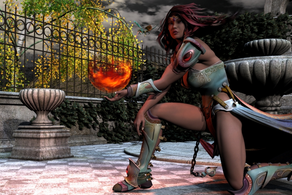 Kushanku: Du meinst den, der rechten Körperhäfte. Doch der liegt auf, nur nicht ganz komplett. Das ist so beabsichtigt. Der andere, den man nicht sehen kann, liegt mit den Zehen auf. Da sie ja eine Metallrüstung an hat, lassen sich nicht die vollen Bewegungen ausführen.