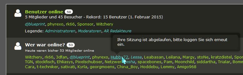 heute habe ich wieder besagte Fehlermeldung gehabt, obwohl ich eingeloggt bin - das erste Mal seitdem das Board neu aufgesetzte wurde.