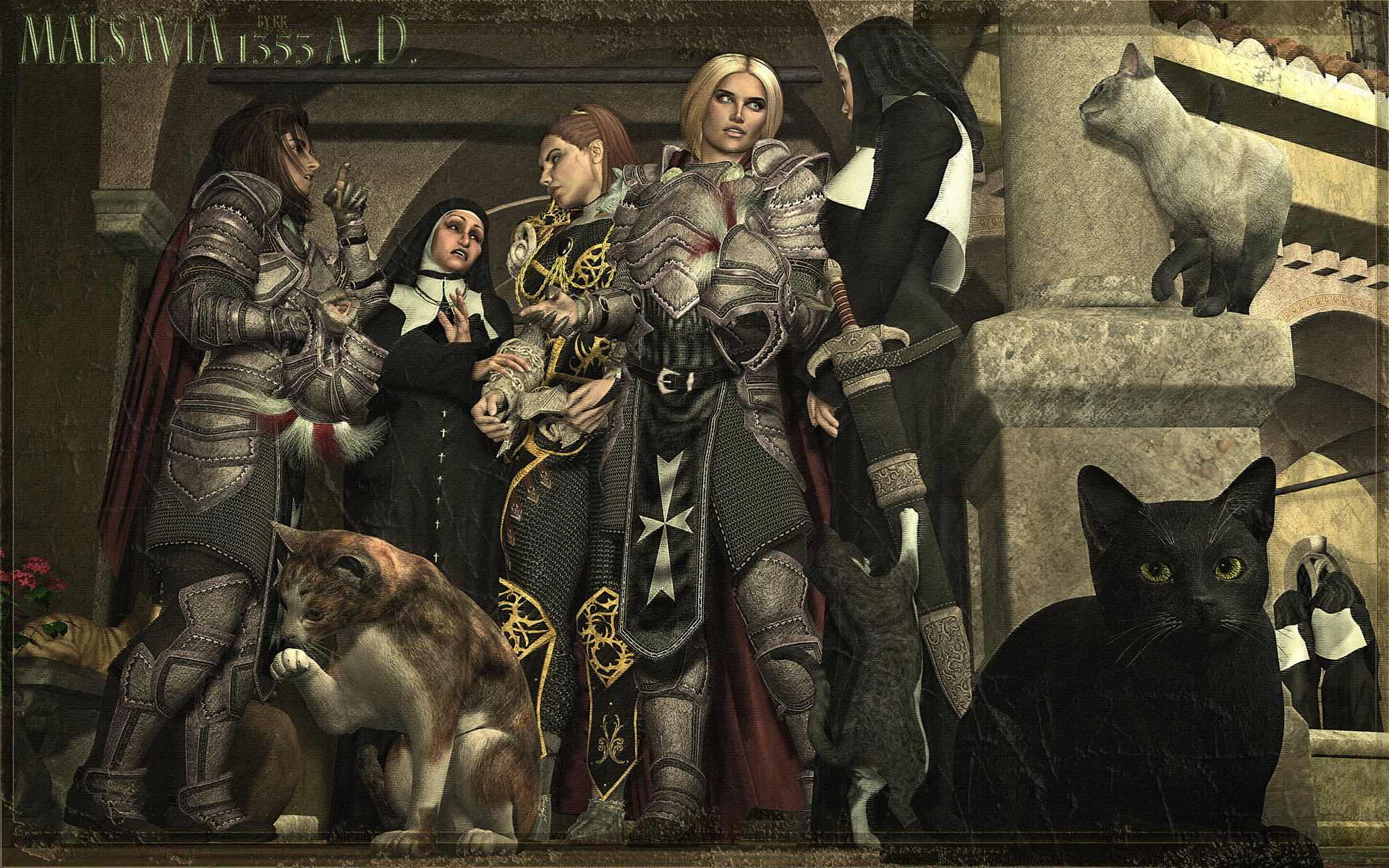 Ey, schön, daß Du Dich noch an Yolande erinnerst (das ist aber die ständig bekiff...äh...bespaßte Truthenne, die taucht bestimmt auch noch irgendwo auf, genauso, wie der Grim, der an permanent leeren Bierdosen leidet, ja, mittlerweile überschneiden sich die Genres Mittelalter und Fantasy eh schon gewaltig, die immer und ewig aufgeregte Straussendame heißt Mathilda (hier in Malsavia, Mathildis).