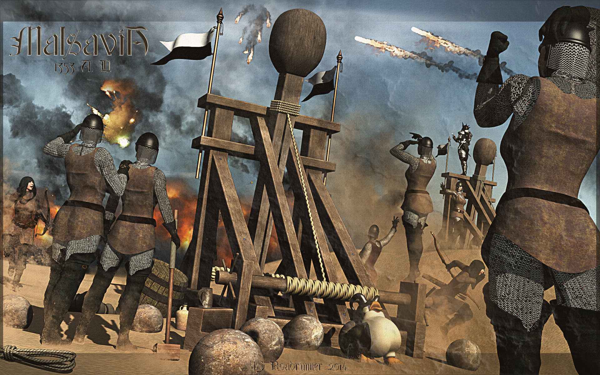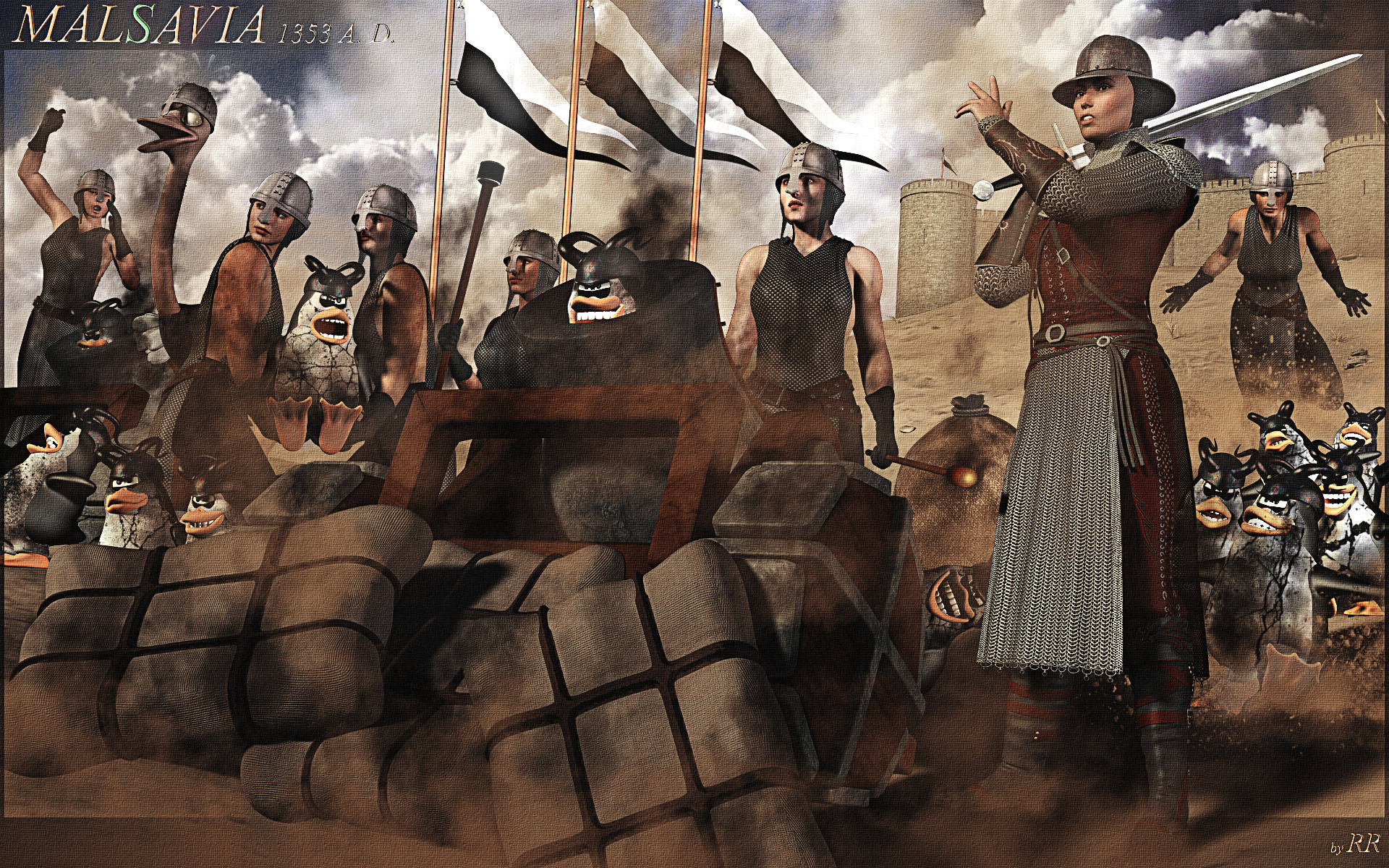 Um die Einheiten Notburga´s an der Nordflanke zu entlasten und in den Verteidigungslinien vor Malsavia eine noch höhere Feuerkraft zu haben, ließ Stadtkommandantin Laurencia Duchont zusätzlich zwanzig schwere Mörser vor die äußerste Stadtmauer verlegen...ja waren verdammt rauhe Zeiten damals, da gehörten auch die Pinguine noch zu den kriegerischen Völkern und Wadenbeissern, daher gerne als Spezialmunition verwendet...keine Bange Leute, bei ausgewogener Schwarzpulvermischung und exakt eingehaltenen Abschuß-/Aufprallwinkel sind die Viecher mehrfach verwendbar (die werden eh meist gleich wieder zurückgeschossen, ein Kübel Piranjas kann kaum gefräßiger sein).