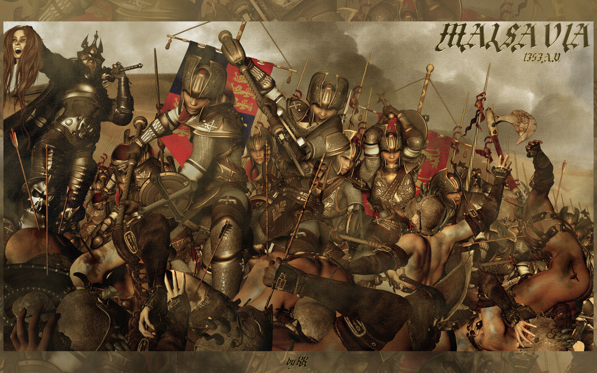 Wie oben schon einmal erwähnt verlagerten sich (durch den sö und sw Zangen(an)griff von Johanna und Thoula) die Schlachtaktivitäten zunehmends ins Zentrum der Thysall´schen Ebene bzw. Richtung Nord-Flanke vor Malsavia selber...und wie schon zu sehen war, waren die Beskidinnen (die eigentlich als Nachhut der Truppen von Ich Dir Du Dir (jaja, die Gute wird auch noch auftauchen) dienen sollten) mit der ganzen Situation völlig überfordert und stellten den Regimentern von Thoula kein wirkliches Hindernis dar...es rechnete auch niemand mit zwei große Entsatzheere.