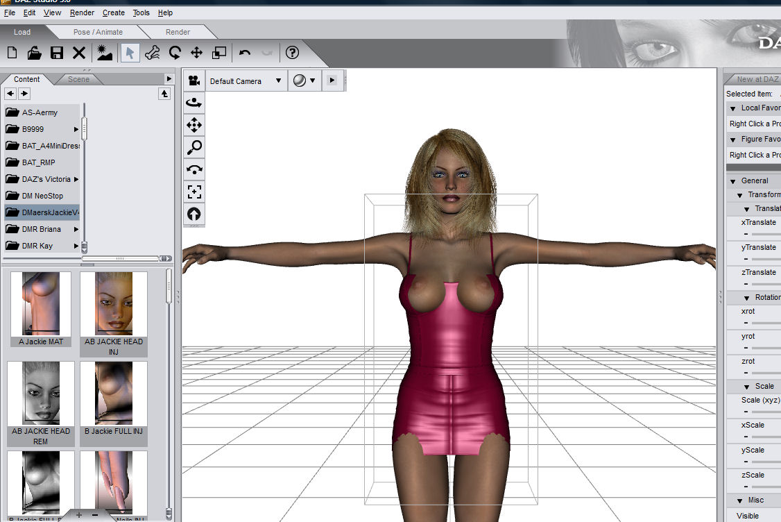 Ich habe das DazStudio in der freien Version, das A4 Minidress (von Daz) und als Model habe ich die Jackie geladen.