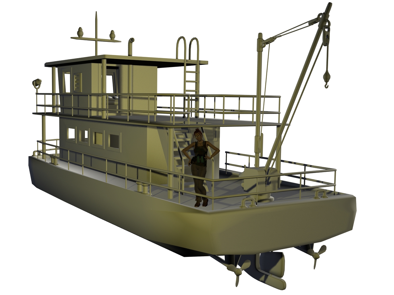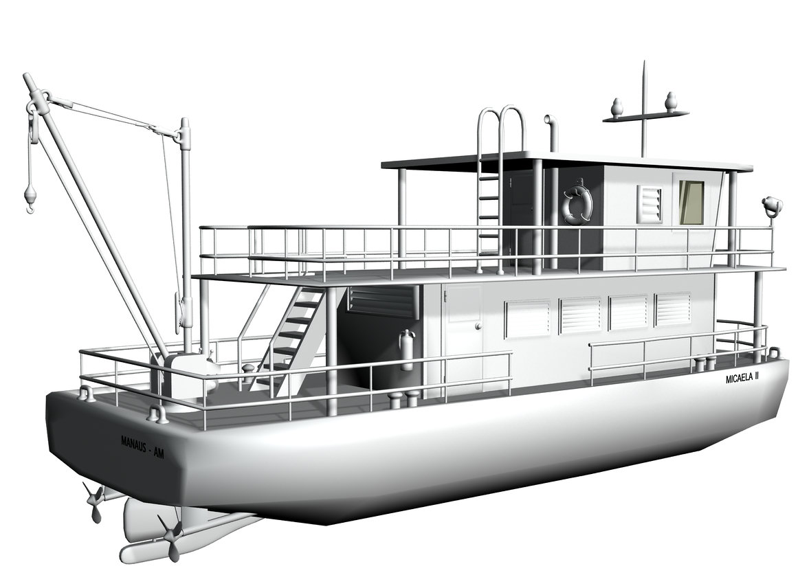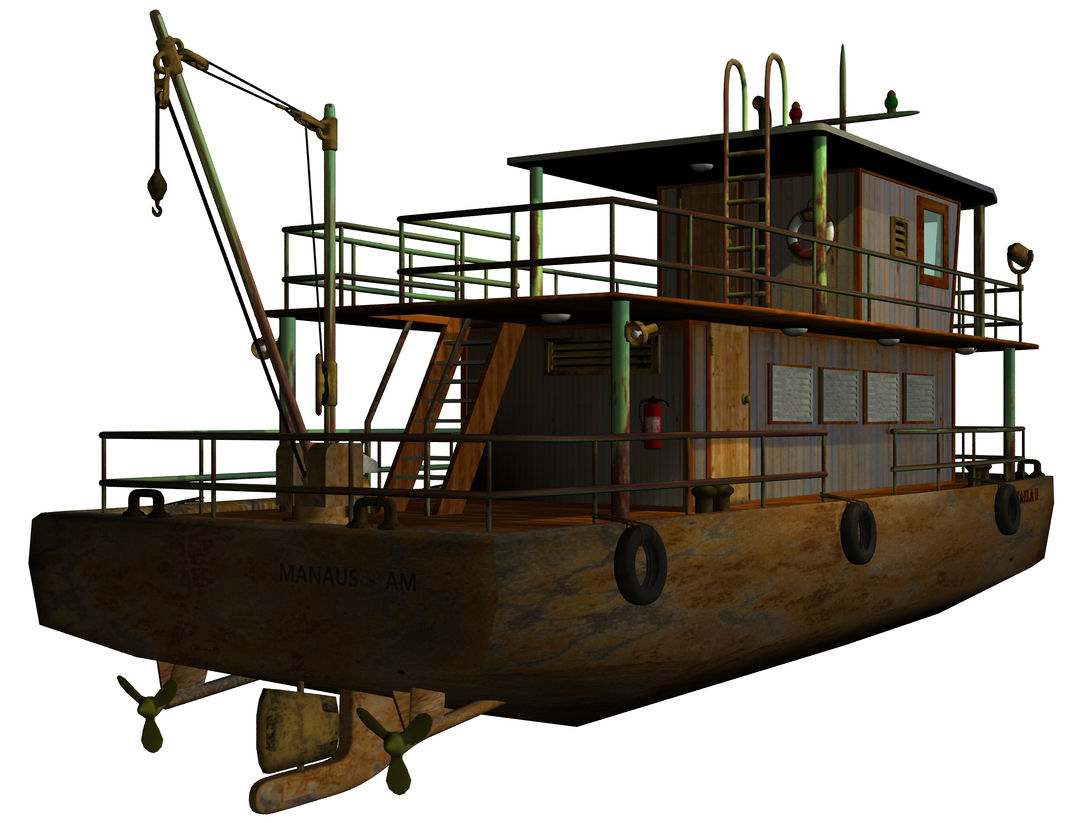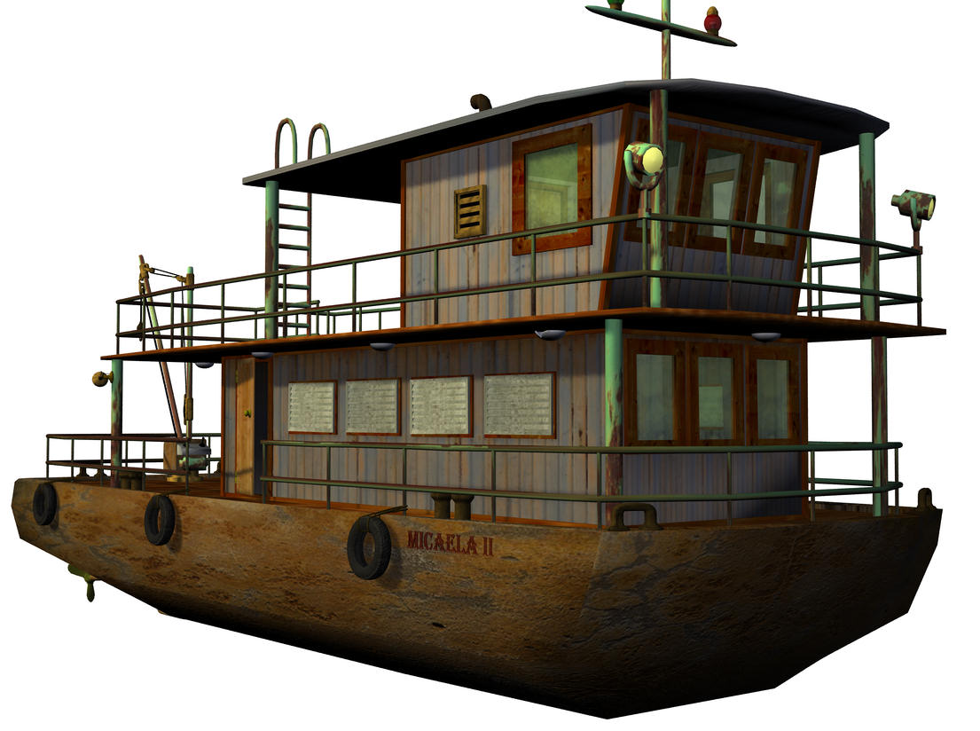 Nach geraumer Zeit habe ich moch endlich mal wieder dazu durchgerungen, Hexagon weiter zu lernen und was Neues zu modellieren. Für meine Sucuriju-Serie bei DeviantART brauchte ich sowieso noch einen "Amazonas-Kahn", der natürlich eine extrem starke Anlehnung an die "Micaela I" aus dem Film "Anaconda" sein soll.