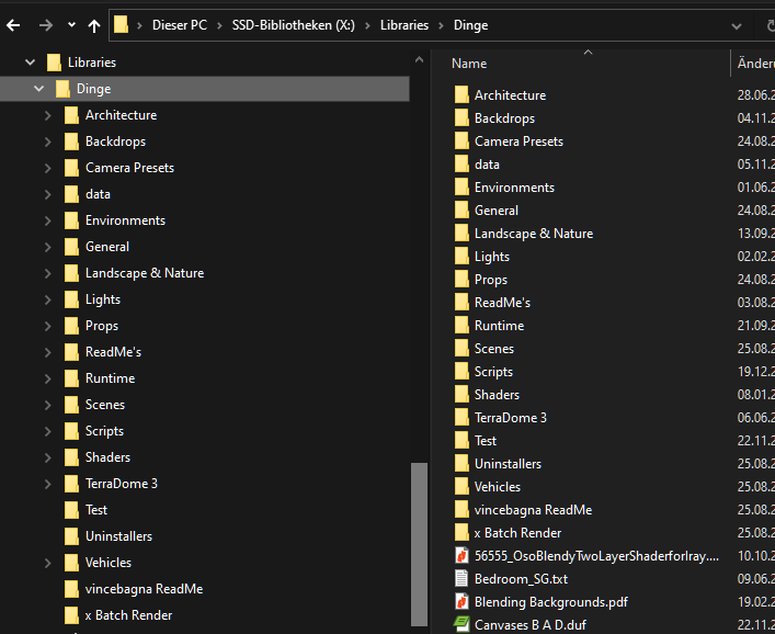 Du wirst natürlich andere Unterordner haben; ich habe hier z.B. keinen "People"-Ordner, weil diese Library für Dinge und Pflanzen reserviert ist.