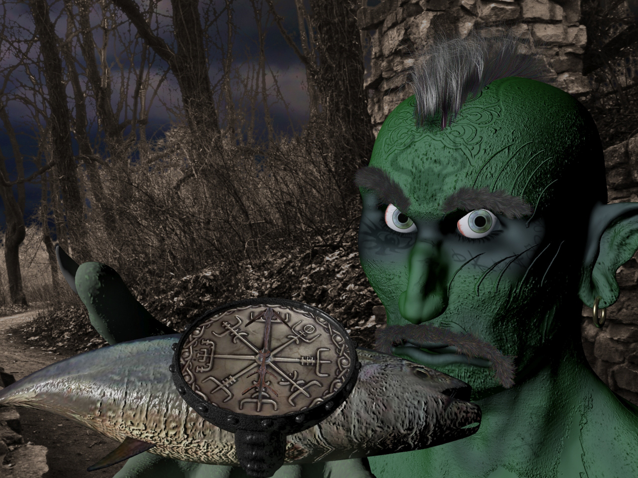 hehe.... "Fischreiter" ...ich wußte doch mit Fischen geht alles... ich hatte mal `nen Klabauterork mit Fischkompas gebastelt... aber dein Bild gefällt mir besser
