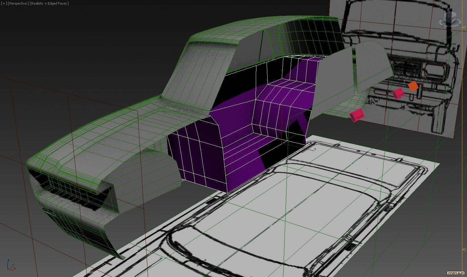 Sitze, Lenkrad und nen bischen Armaturenbrett für den Innenraum kamen dazu... und mittels Shell kam etwas Volumen für die inner Seite der Karosserie dazu...