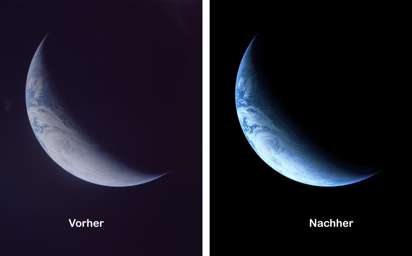 Naoo, ja, du hast recht aber ich habe einige kleine Tricks hier angewendet, die ein wenig räumliche Tiefe erzeugen. Diese Tricks waren notwendig damit wir, also unser Hirn, so ein Bild als "räumlich Tief" interpretiert. In der Realität beispielsweise würde man auch gar keine Sterne sehen, da die Sonne alle überstrahlen würde.