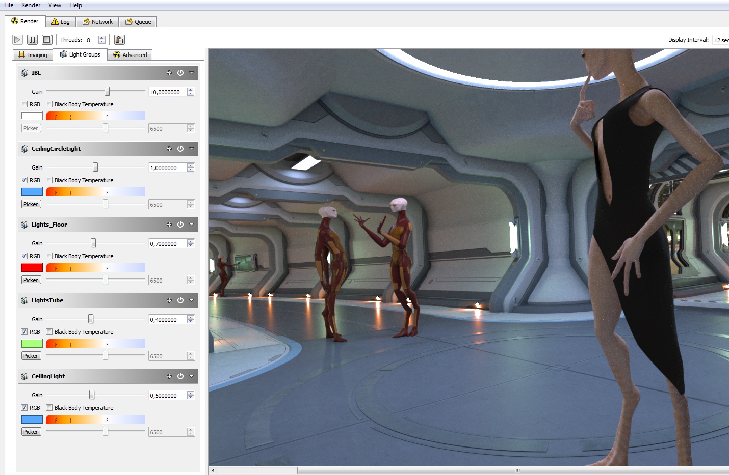Als Mesh-Lights sind es hier das Deckenlicht ist blau, das Bodenlicht rot und die Röhren an den Wänden strahlen grün. In der Addition ergibt es wieder weiss, lokal ist aber diese Farbigkeit noch vorhanden. Diese Lichtmischung wollte ich einfach ausprobieren.