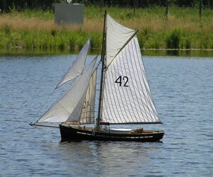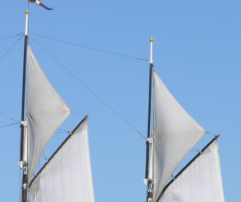 ) Sicher ist auch - bei einem Schiff dieser Größe entert niemand zum Segelsetzen in den Mast auf, auch das Topsegel wird, wie alle anderen, von Deck aus gesetzt.Ein Gaffelrigg ist ein kleines bißchen kompliziert, und die meisten Pläne, schematisieren hier gern.
