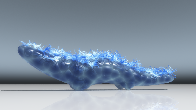 Danke Xen0...ich bin hier etwas der Exot im Modellieren, weil ich hautsächlich mit Vue arbeite, das eigentlich eben ein Landschaftsprogramm ist und nicht fürs Modelling gedacht, aber ich kann halt mit Vue und schlichten geometrischen Grundformen wie Kugel, Quadrat etc und ausschliesslich boolschen Operationen sowie der Vue Funktione "[lexicon]Metablob[/lexicon]", die Elemente per mausklick zusammenschweisst und rundet, schneller und besser modellieren, weil es mir anscheinend besser entstpricht ![]()